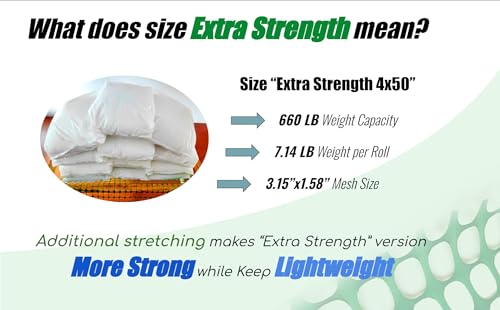 PotatoLife Plastic Mesh Fence Safety Fence, Extra Strength 4'x50' Roll with 100 Zip Ties, Resuable Temporary Netting for Garden Fencing, Construction, Snow Fencing, Animal Barrier, Poultry, Deer, Dog