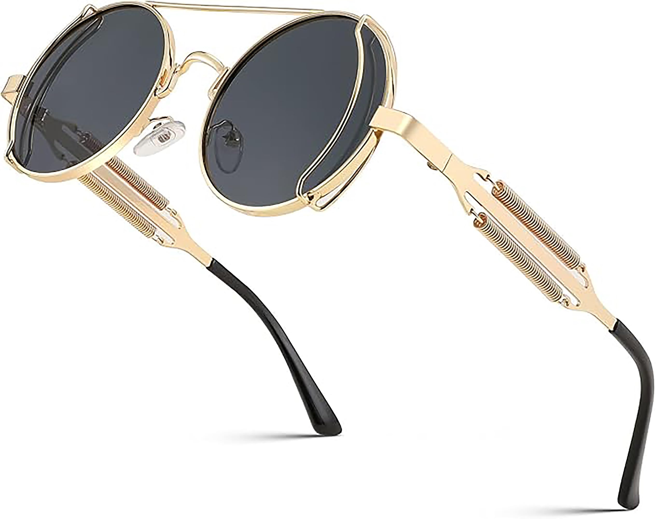 FEISEDY Round Aviator Steampunk Sunglasses Design: The retro steampunk sunglasses are designed with a round metal frame, classic and elegant. With double bridge design, enhances the luxurious and textured feeling of the glasses. With a creative metal frame, retro, and rock.