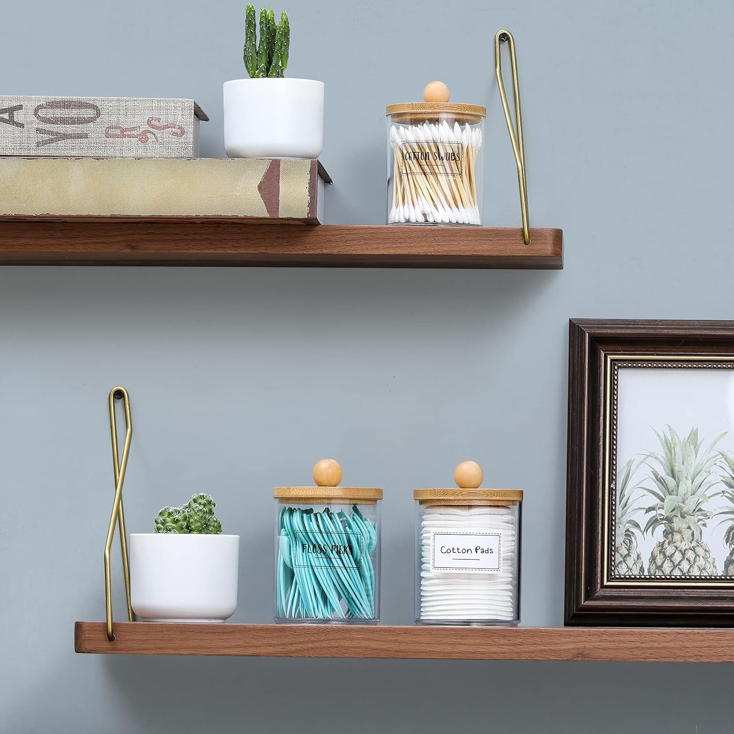 PRODUCT INCLUDE: Item includes 4 pack 10 Oz q tip apothecary jar with bamboo lids [ Diameter - 2.7 inches, Height - 4.5 inches ], 6 white labels, 6 transparent label with black words (Cotton Balls, Cotton Swabs, Cotton Pads, Hair Ties, Floss Picks, Bath Salt). Uniquely designed labels are commonly used by most people. You can also DIY your writing on the white labels