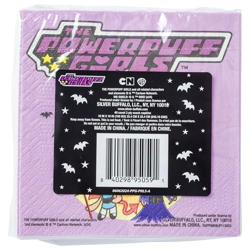 Celebrate your special occasion with The Powerpuff Girls! Themed napkins feature Blossom, Bubbles, and Buttercup in Halloween costumes. The characters are featured against a full moon and are surrounded by bats. Written at the top of the napkin is “The Powerpuff Girls.” Napkins are purple. SINGLE USE ONLY. Please dispose of properly after use. Each napkin pack comes with 40 napkins; perfect for large and small gatherings. Measuring 10” x 10”, these napkins are great to rest drinks on, set tables, or to add flair to your setup. Napkins are ideal for birthday parties, Halloween events, or casual gatherings. Spice up your party while keeping your space clean! Take a dive into the fictional world with Silver Buffalo! Silver Buffalo provides fans with official merchandise from their favorite characters. Working alongside licensors and brands, we create unique and imaginative products which are designed with great care and detail. Silver Buffalo aims to connect fans to their favorite cartoon characters, superheroes, movies, tv-series, and more. Celebrate your fandom!