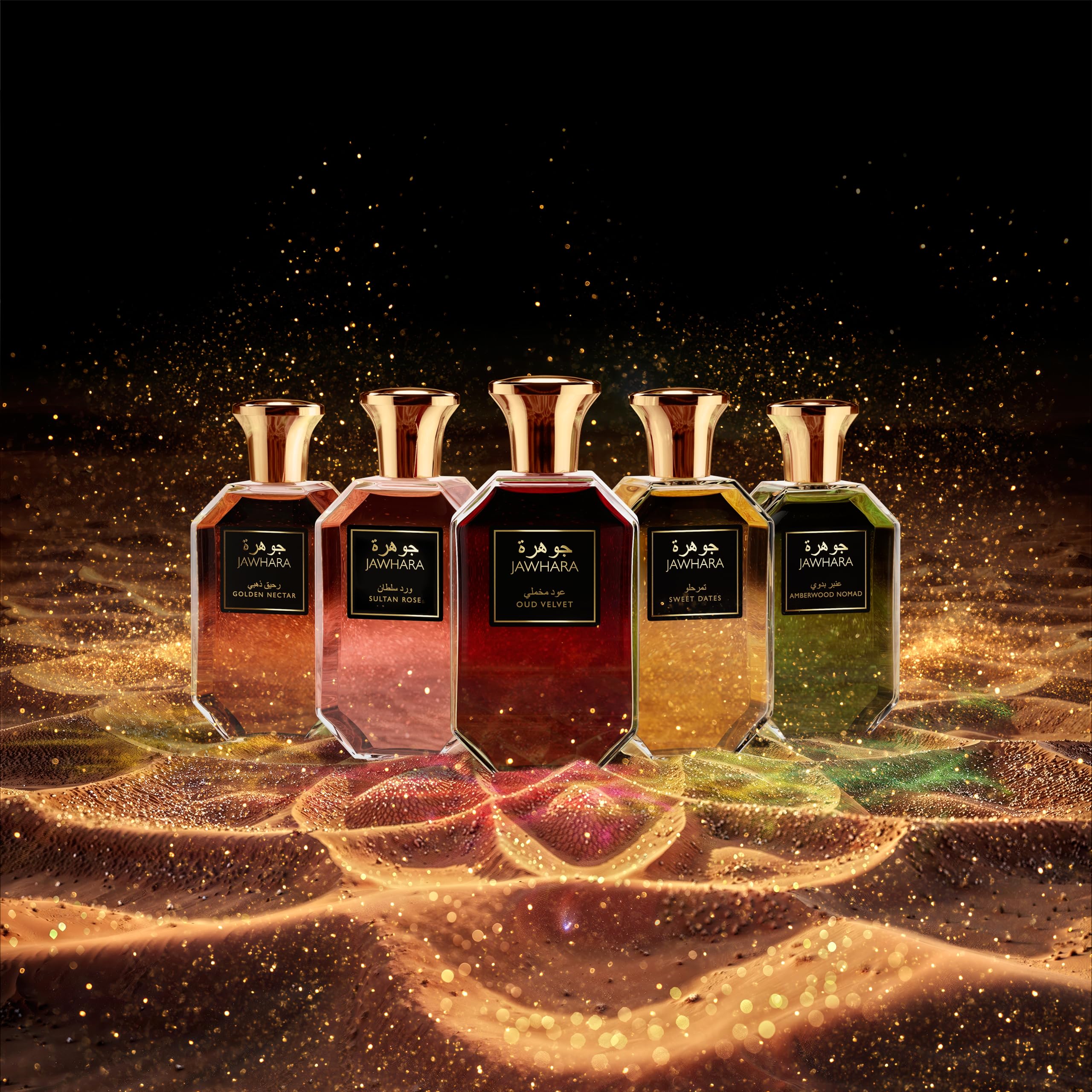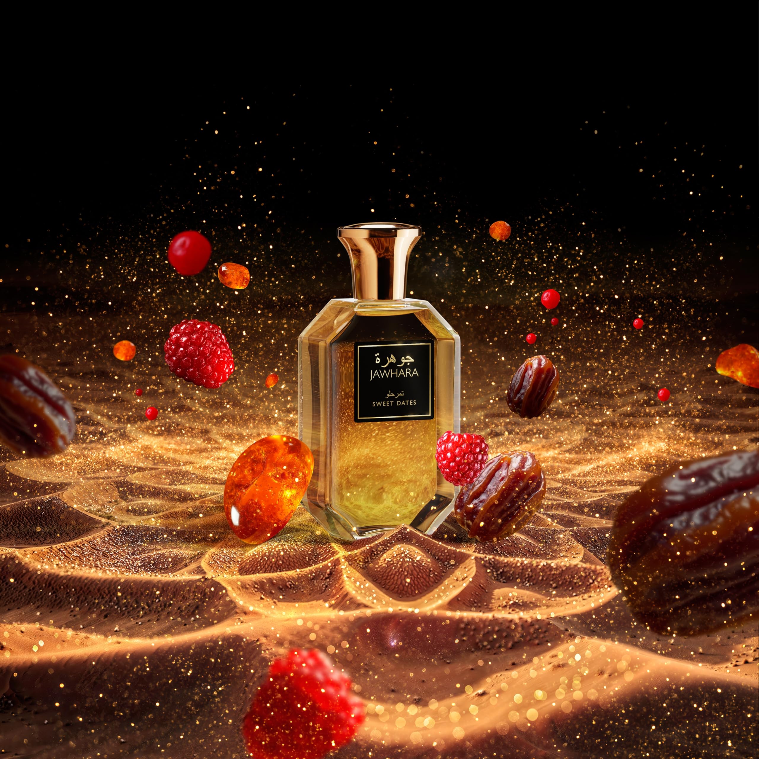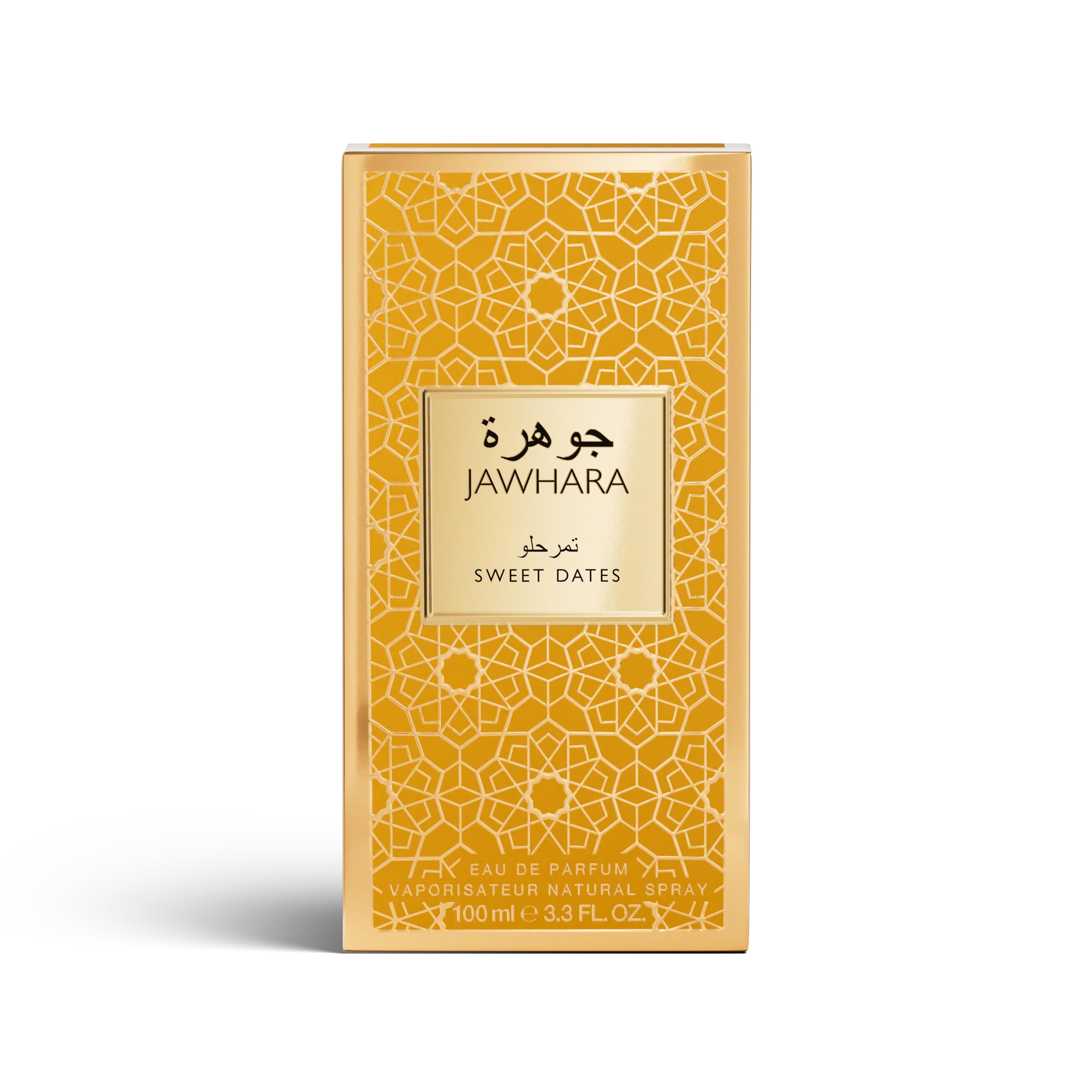 Uncover the hypnotic aromas of the Middle East with Sweet Dates, an ambery-fruity perfume from the Jawhara Collection. This unisex perfume opens with a tempting blend of sweet vanilla and raspberry, before delicious date accord adds an exotic richness enhanced by earthy patchouli. A smooth base of caramelized amber accord and cedarwood complete this luxurious, velvet fragrance for him and her. Each scent from the collection is captured in a refined glass bottle, taking inspiration from ornate Arabian architecture.