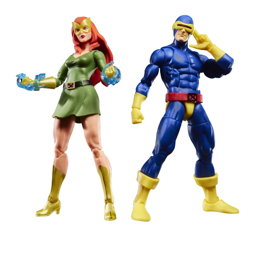 Summary Bring the excitement and wonder of the Marvel Universe to your collection with Hasbro Marvel Legends Cyclops and Jean Grey action figures! These collectible 6-inch scale Marvel figures are detailed to look like the characters' appearance in Marvel Studios' X-Men '97. Figures are fully articulated with premium design and poseable heads, arms, and legs. Marvel action figure set comes with 10 accessories, including attachable Cyclops optic blast FX, alternate hands, and an alternate head for each figure. Figures wear their characters' iconic original costumes, inspired by the X-Men '97 Season 1 finale. Hasbro Marvel action figures' 6 inch scale make them great for displaying in fans' collections. Reimagine series-inspired scenes on your shelf with Marvel collectibles. Features MARVEL STUDIOS' X-MEN '97 Collectible Cyclops and Jean Grey figures are inspired by the characters' appearance in Marvel Studios' X-Men '97 animated series on Disney+ SERIES-INSPIRED ACCESSORIES Collectible Hasbro Marvel Legends action figures come with 10 accessories, including alternate hands and Cyclops optic blast FX ANIMATED LIKENESS Figures have premium animation-accurate deco and design, wearing classic costumes inspired by the X-Men '97 Season 1 finale -- including Jean Grey's retro Marvel Girl look DISPLAY-WORTHY ARTICULATION Collectible action figures feature over 20 points of articulation with fully poseable head, arms, and legs. Great for play or display! RETRO-INSPIRED WINDOW BOX Display these Marvel Legends X-Men figures on your shelf with collectible packaging featuring series character art CYCLOPS and JEAN Jean Grey and Cyclops gear up for a dangerous mission to save the world, which puts their team of X-Men to the test as mutant-human relations reach a tipping point BUILD A MULTIVERSE OF MARVEL COLLECTIBLES Add to your X-Men '97 collection with 2-pack