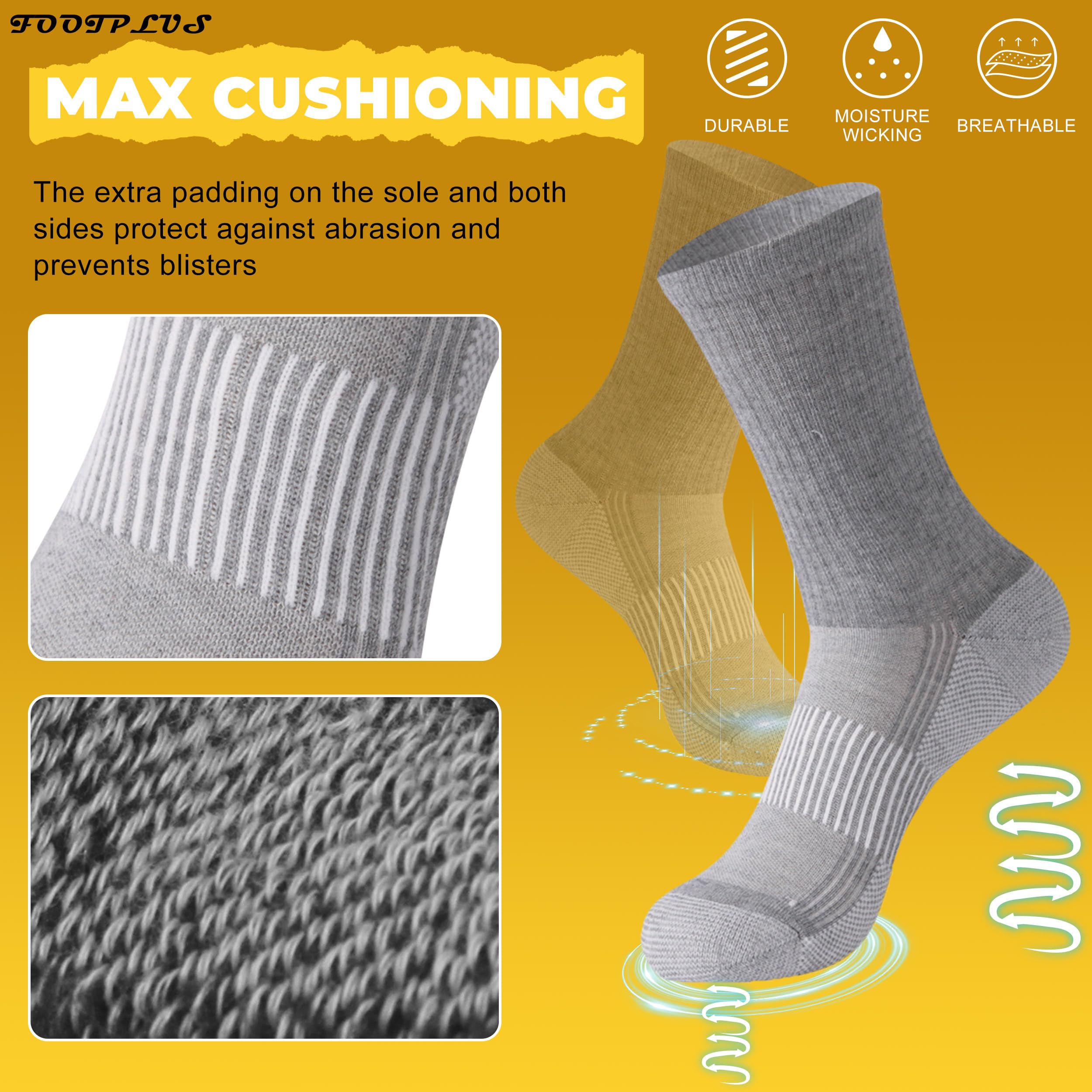 PREMIUM COMFORT FIT- The cushioned sole gives FOOTPLUS performance running socks a soft feel. The spandex arch& ankle compression provides extra protection. The hand-lined seamless toe ensures protection. The heel tab prevents the socks from slipping down. Foot loop will cover the foot completely to increase double protection from wounds caused by the excessive friction and shoes