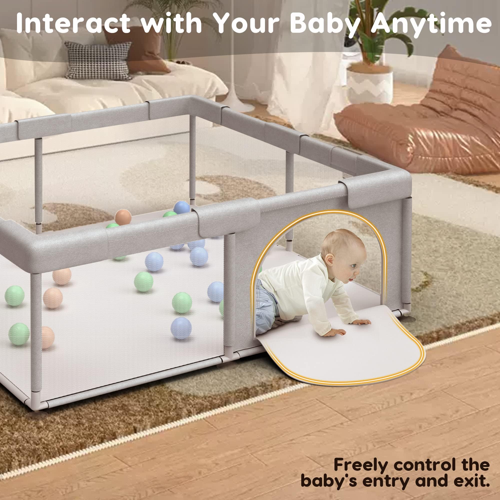 【360° All-Vision Design】The 360° all-vision design of this baby playpen allows parents to keep an eye on their little ones from all angles. Whether you're in the kitchen or the living room, you can always monitor your baby's activities with ease. Outter zipper design prevents the baby running out from the baby play pen active center accidentally.