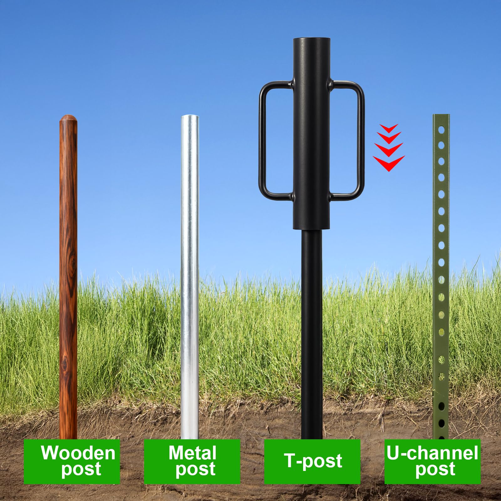 Specially designed for any types of fence posts, easy to operate, making it ideal for installing metal U-posts, T-posts, garden wooden fence posts with ease