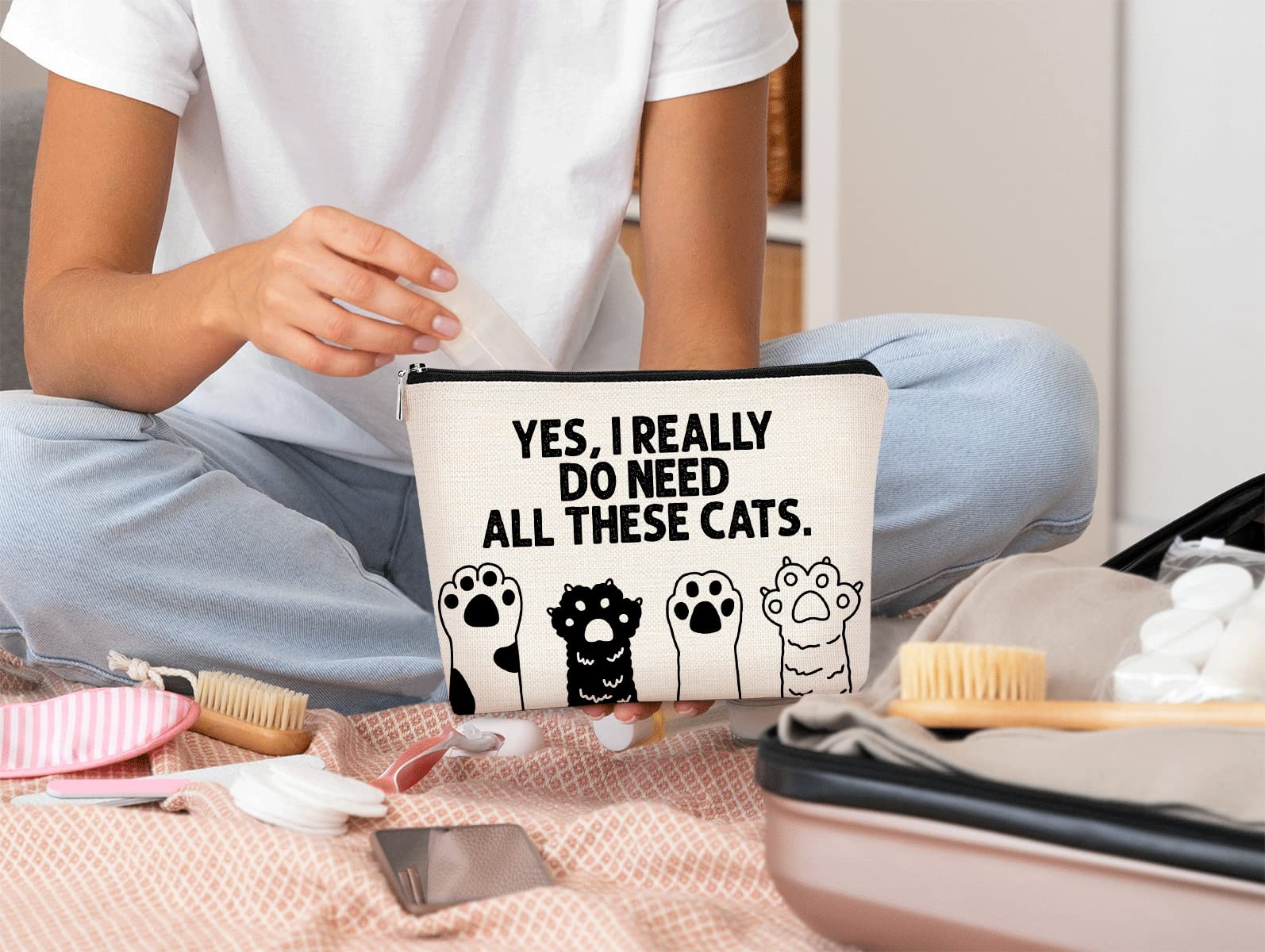 Material: The cosmetic bag is made of premium linen fabric, which is soft to touch, light weight and durable. It's easy for you to wash and carry.