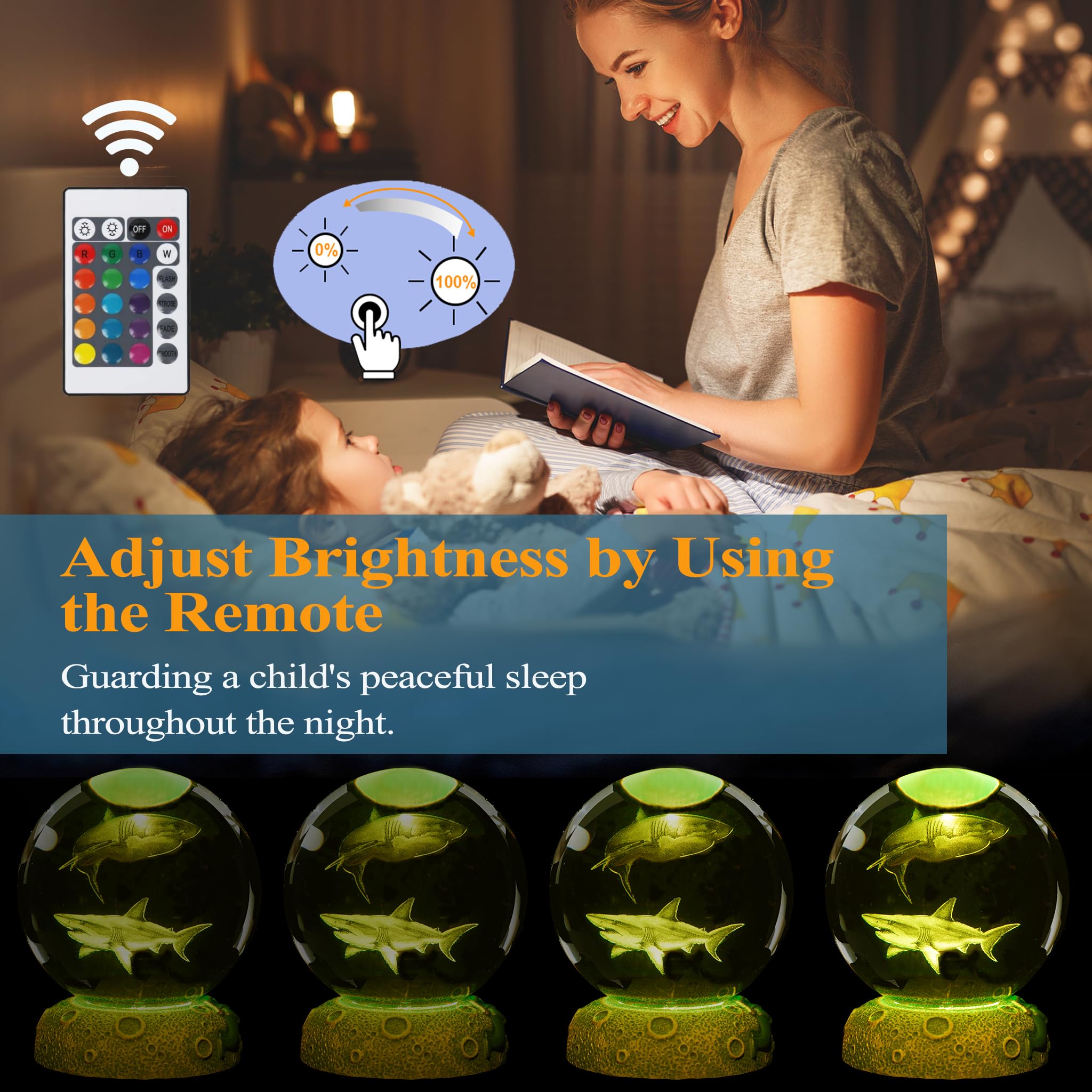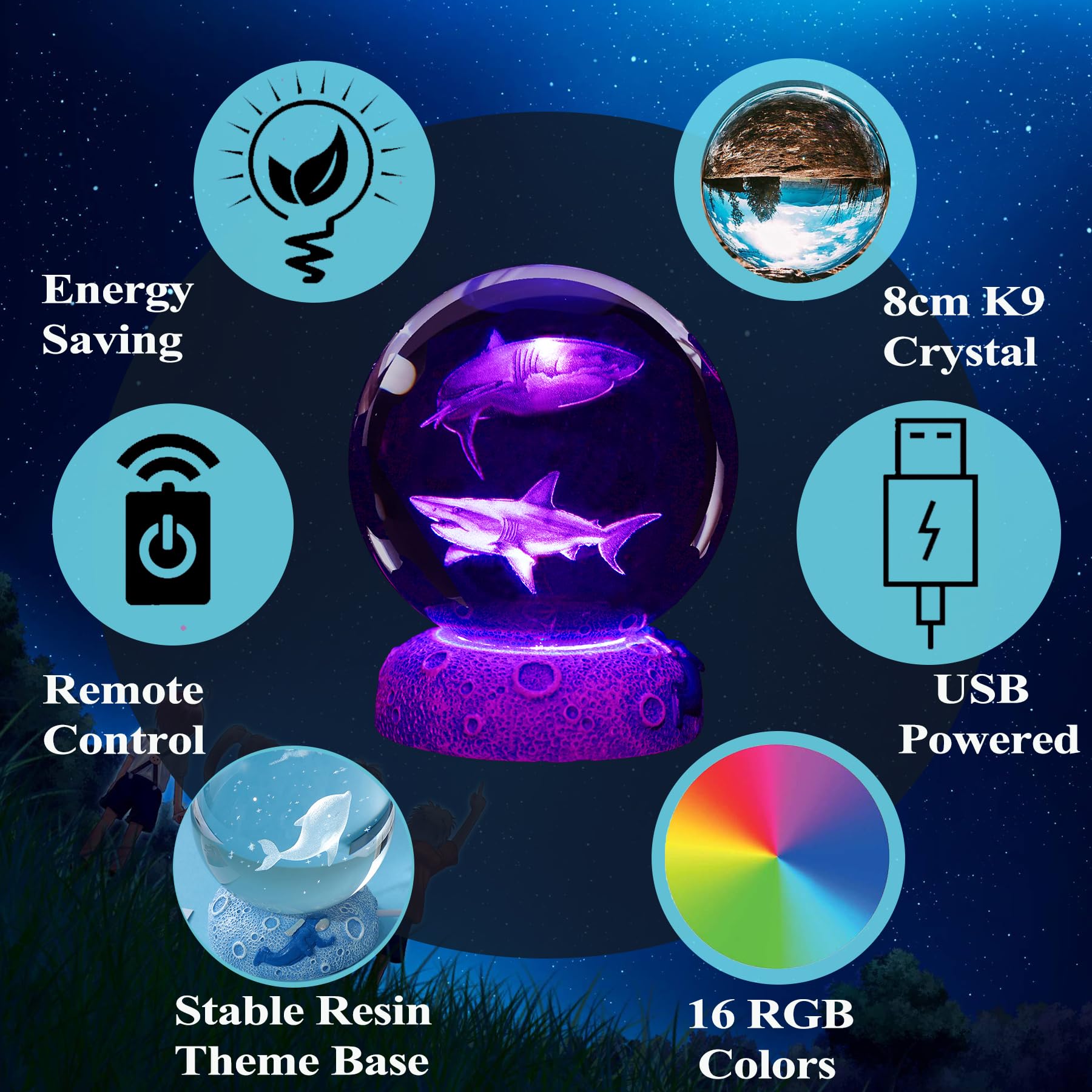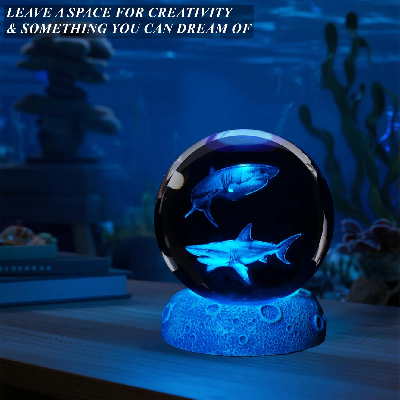 Captivating Decor: This crystal ball lamp 🔮 features a mesmerizing 3D shark 🦈 figurine encased within a luminous glass sphere, creating an enchanting centerpiece for your home. It's like having a tiny, glowing underwater adventure right on your shelf!