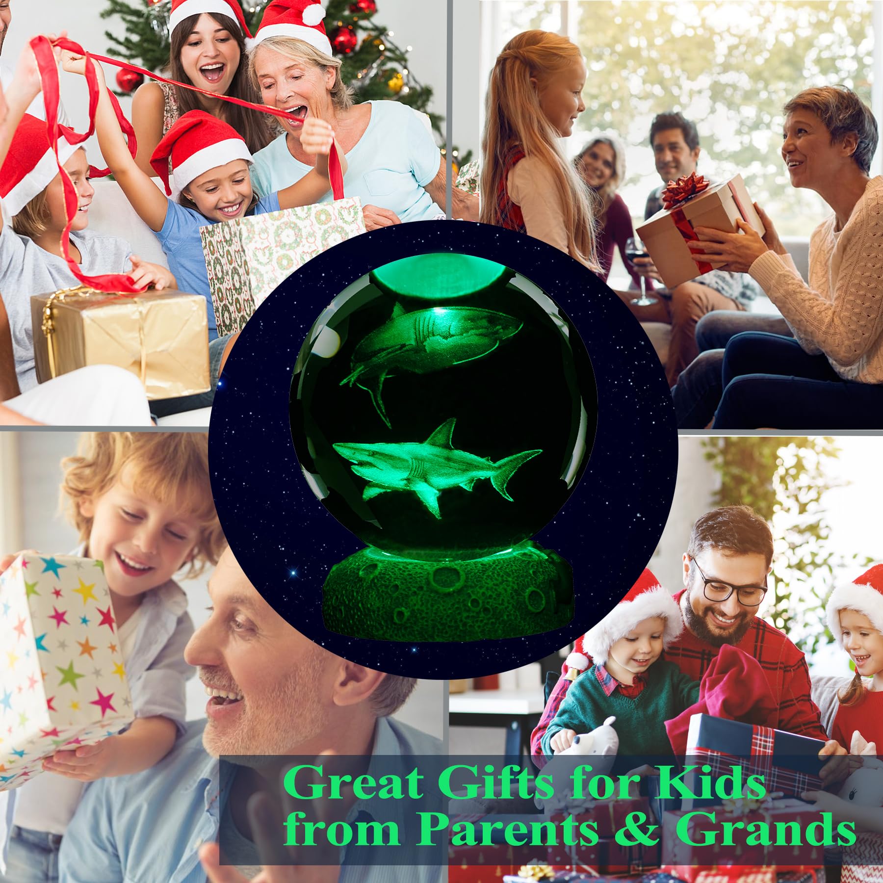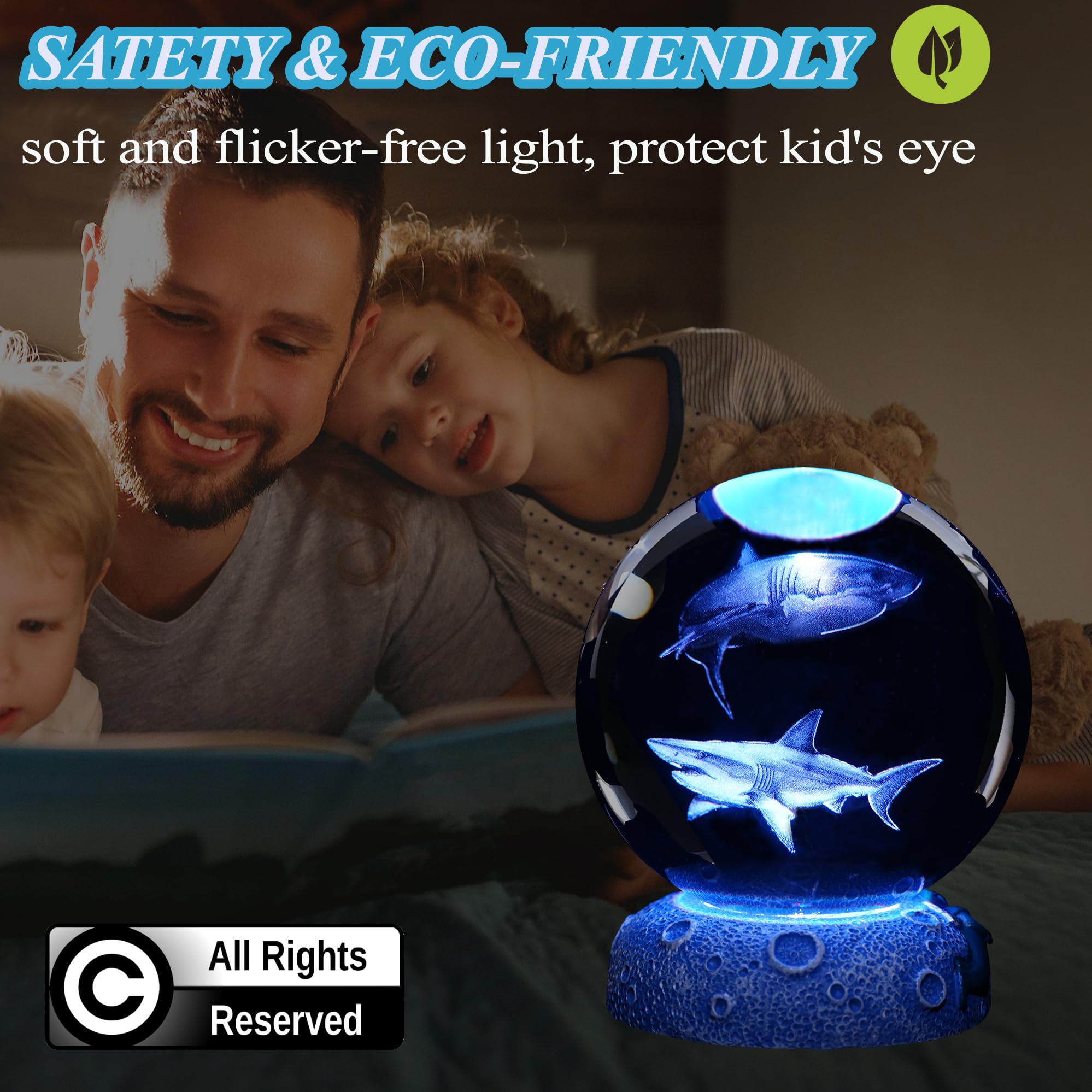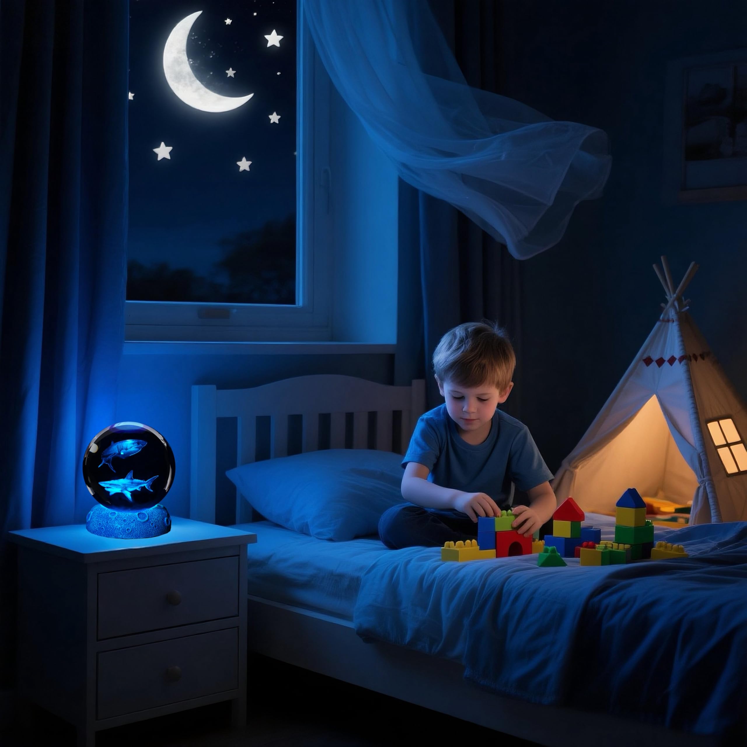 Captivating Decor: This crystal ball lamp 🔮 features a mesmerizing 3D shark 🦈 figurine encased within a luminous glass sphere, creating an enchanting centerpiece for your home. It's like having a tiny, glowing underwater adventure right on your shelf!