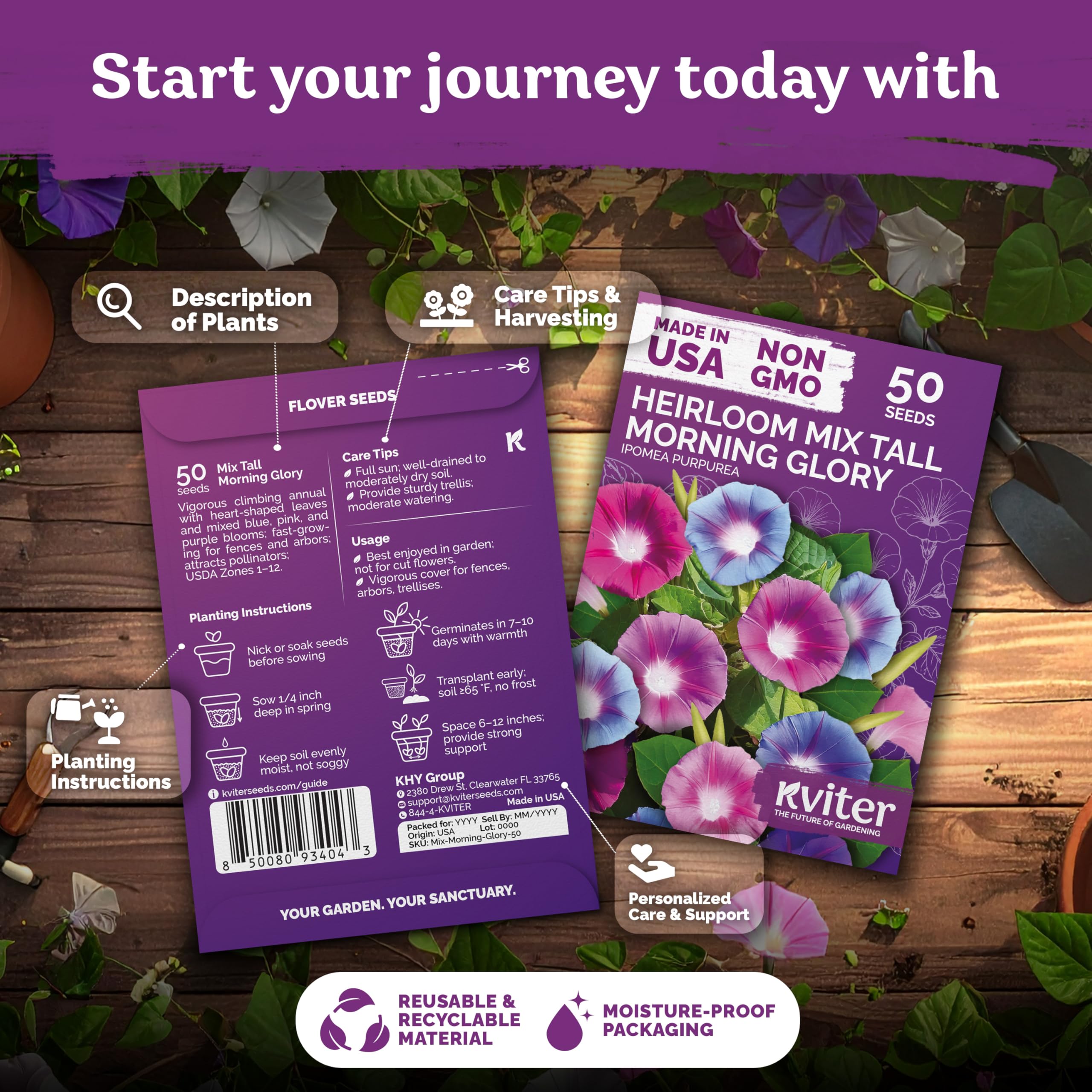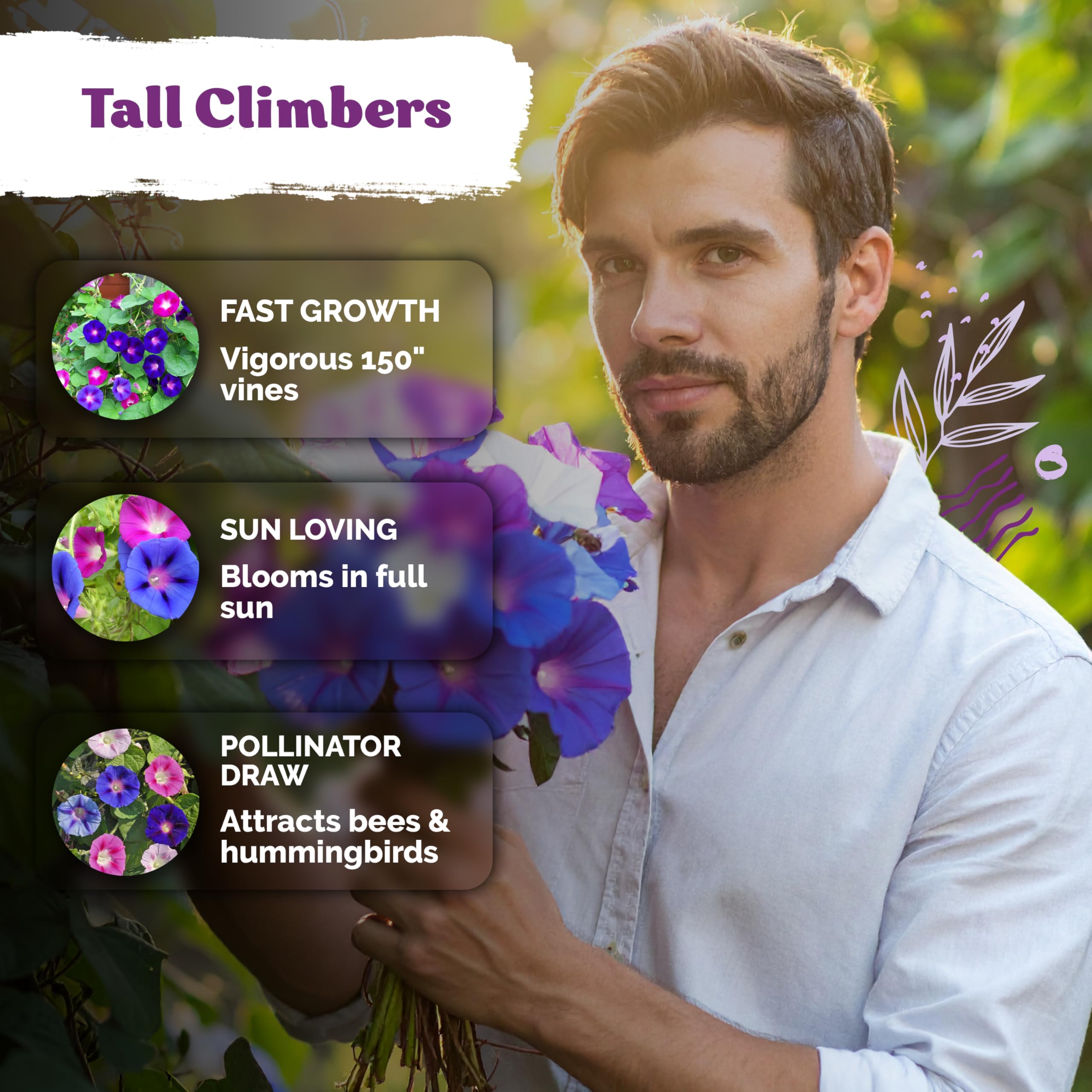 Versatile Starter: Begin these seeds for planting flowers indoors or sow outside for a vibrant morning glory tall mix. Ideal for glory morning lovers, these climbing flower seeds bloom for months.