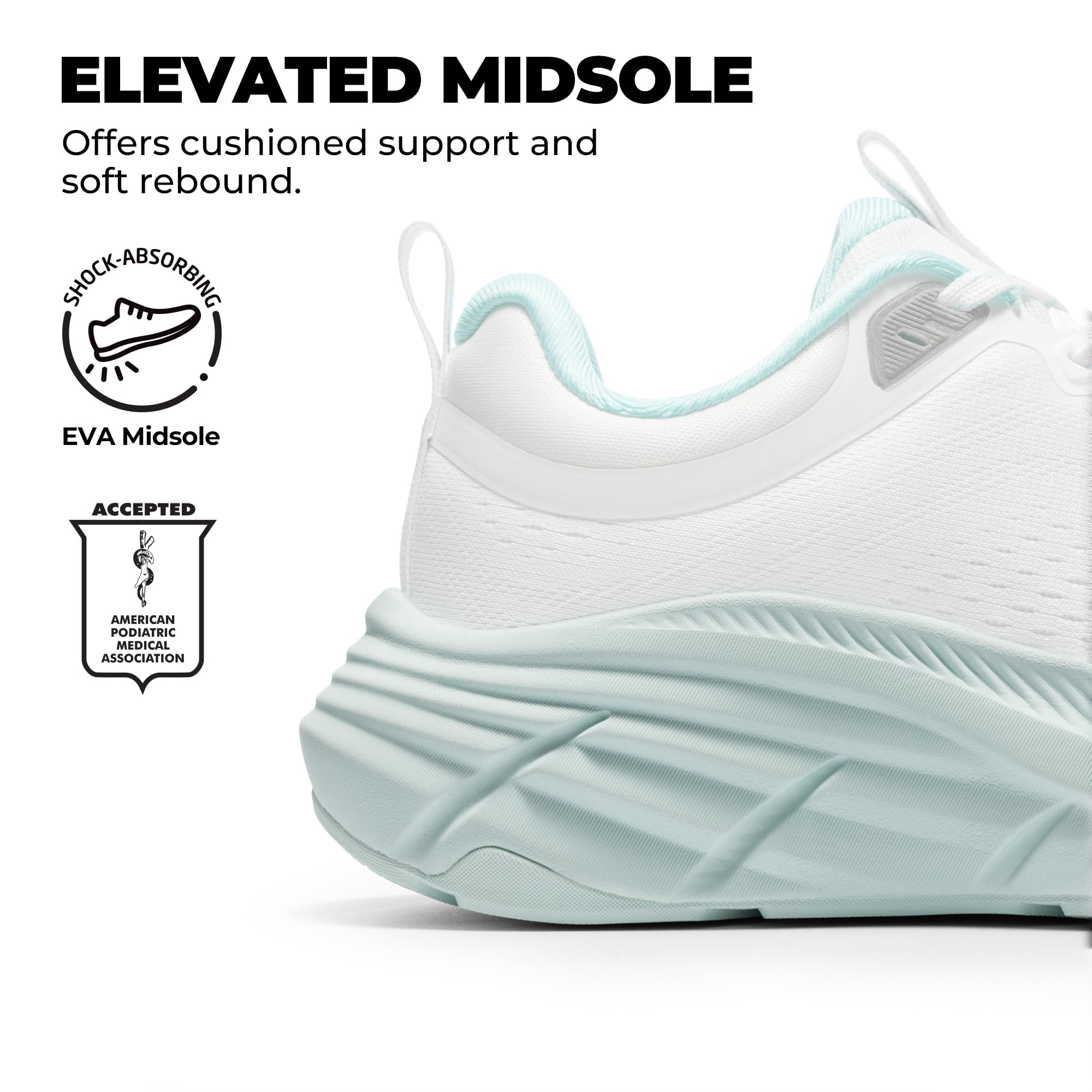 Confident & Stable: Designed for walking and running, these women’s workout shoes feature a slip-resistant rubber outsole that enhances traction and grip on wet pavements and gym floors.