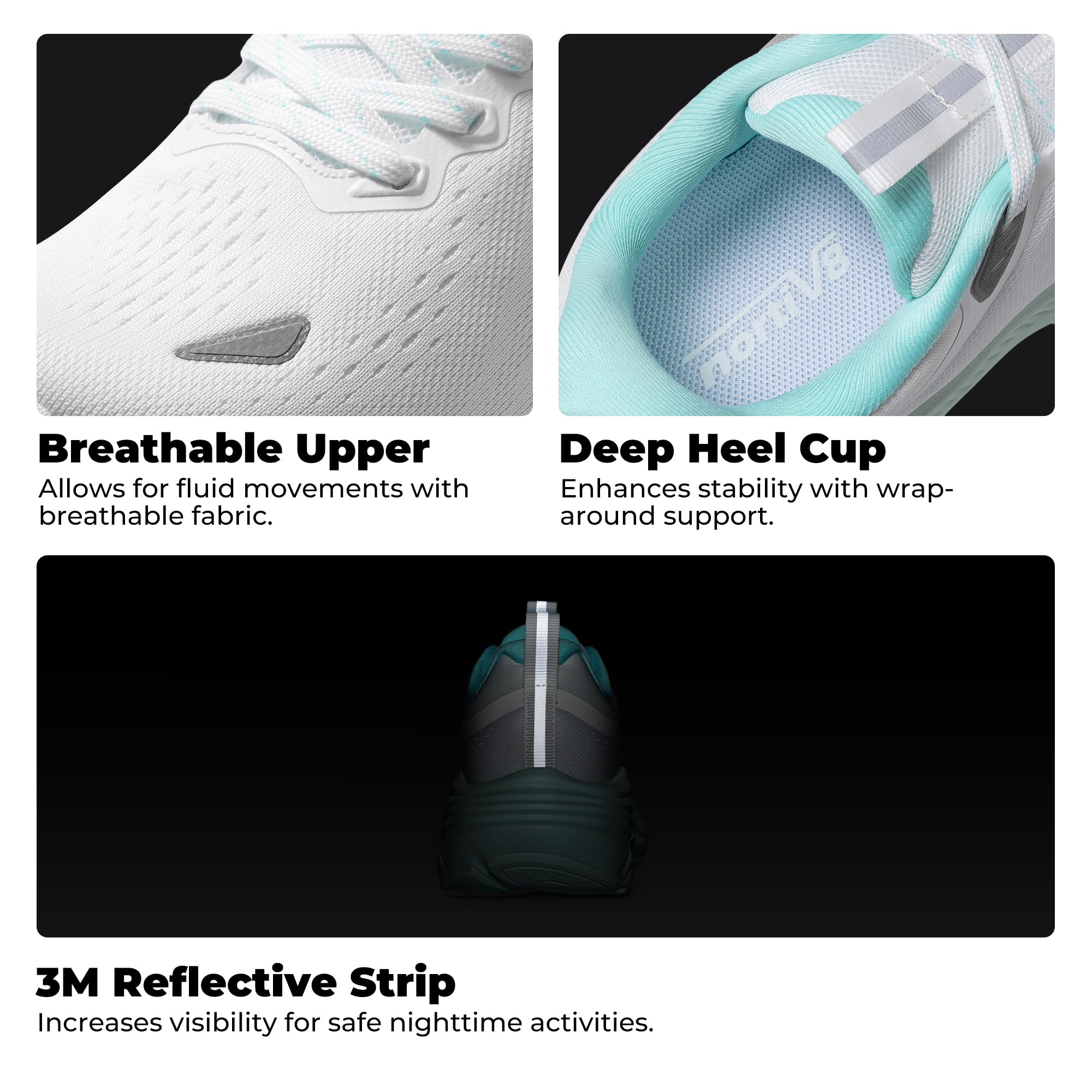 Stylish & Protective: These women’s gym shoes are comfortable for everyday wear but also perform well for training. The added 3M reflective strip on the upper enhances visibility during nighttime walks.