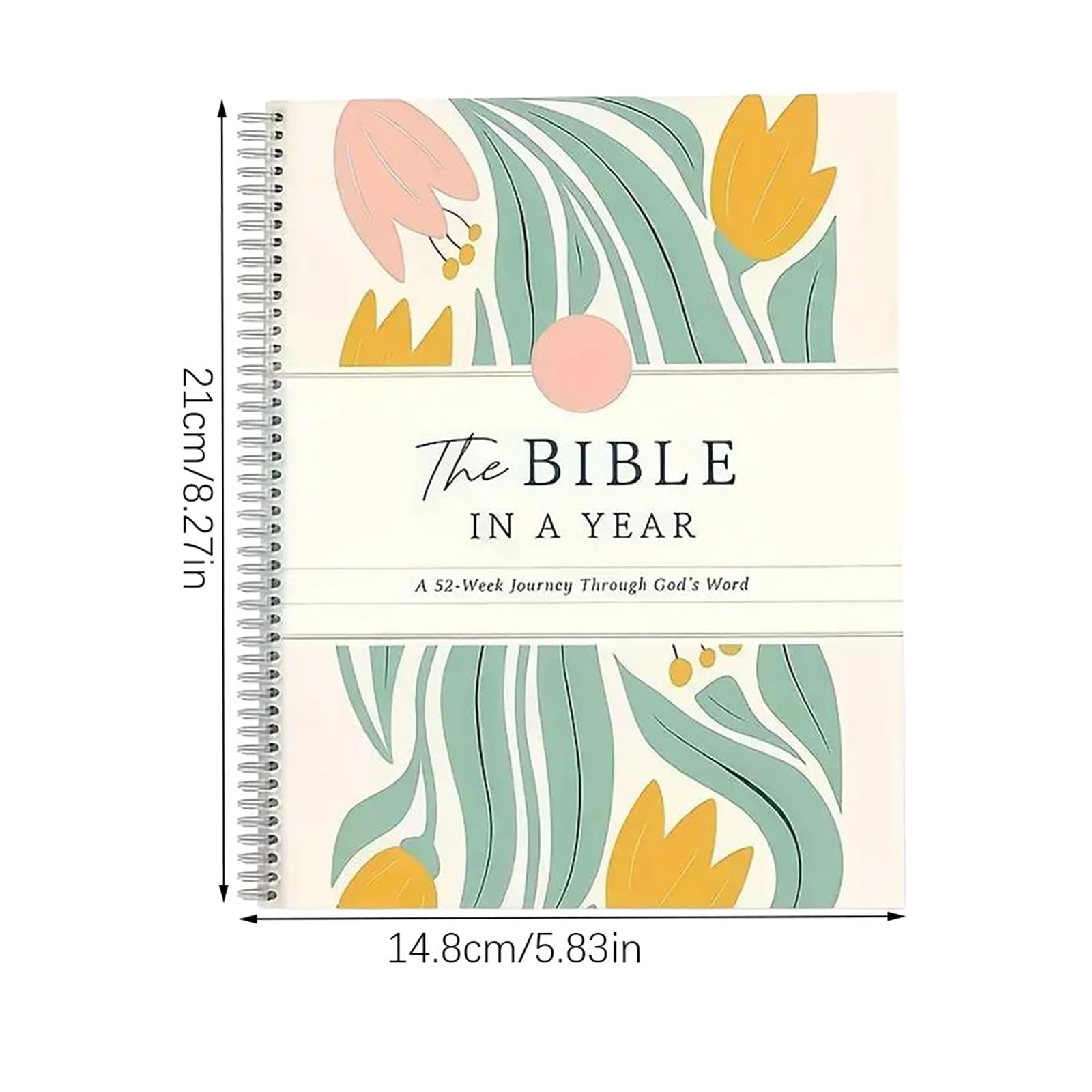 Name: The Bible In A Year A 52-Week Study Product Size: 22 x 16cm / 8.66 x 6.3 inches Package Includes: 1 pc Description: "The Bible in a Year: A 52-Week Study for Women" is a spiral-bound A5 study guide designed to help women systematically read and understand the Bible in one year. With a structured weekly plan, it supports spiritual growth and practical application in daily life. Note: 1.Due to monitor settings and lighting conditions, the actual color may slightly differ from the images. Thank you for your understanding! 2.Please allow a 1-2 cm variance in measurements due to manual measuring.