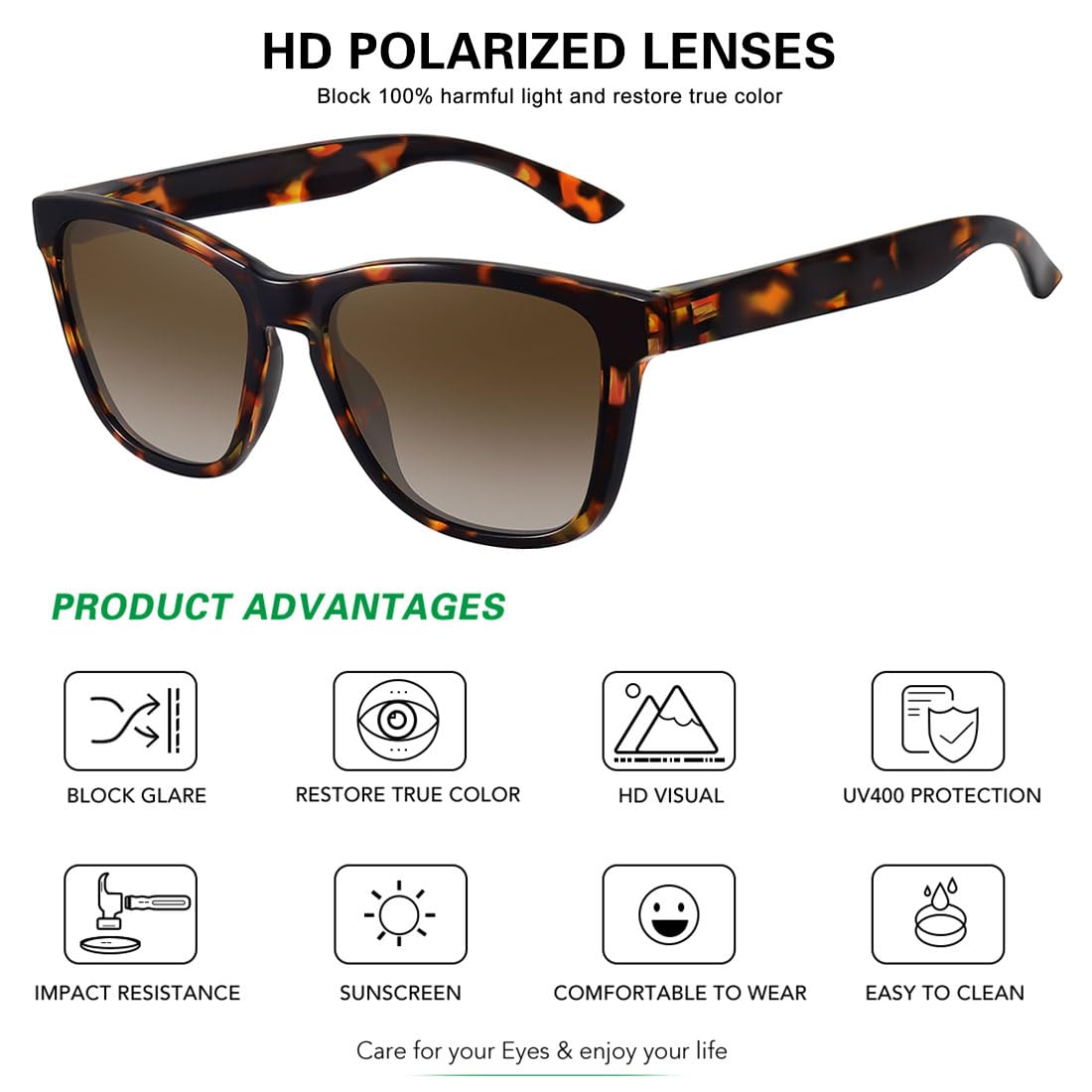 TAC polarized lens reduces glare, enhances true color, and protects eyes.