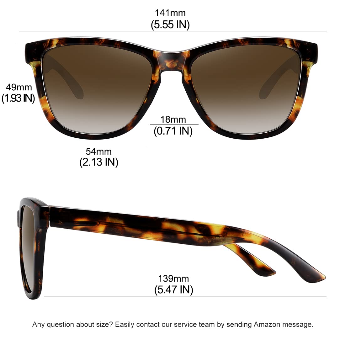 Specs: lens width: 54mm, lens height: 49mm, temple length: 139mm, bridge width: 18mm.