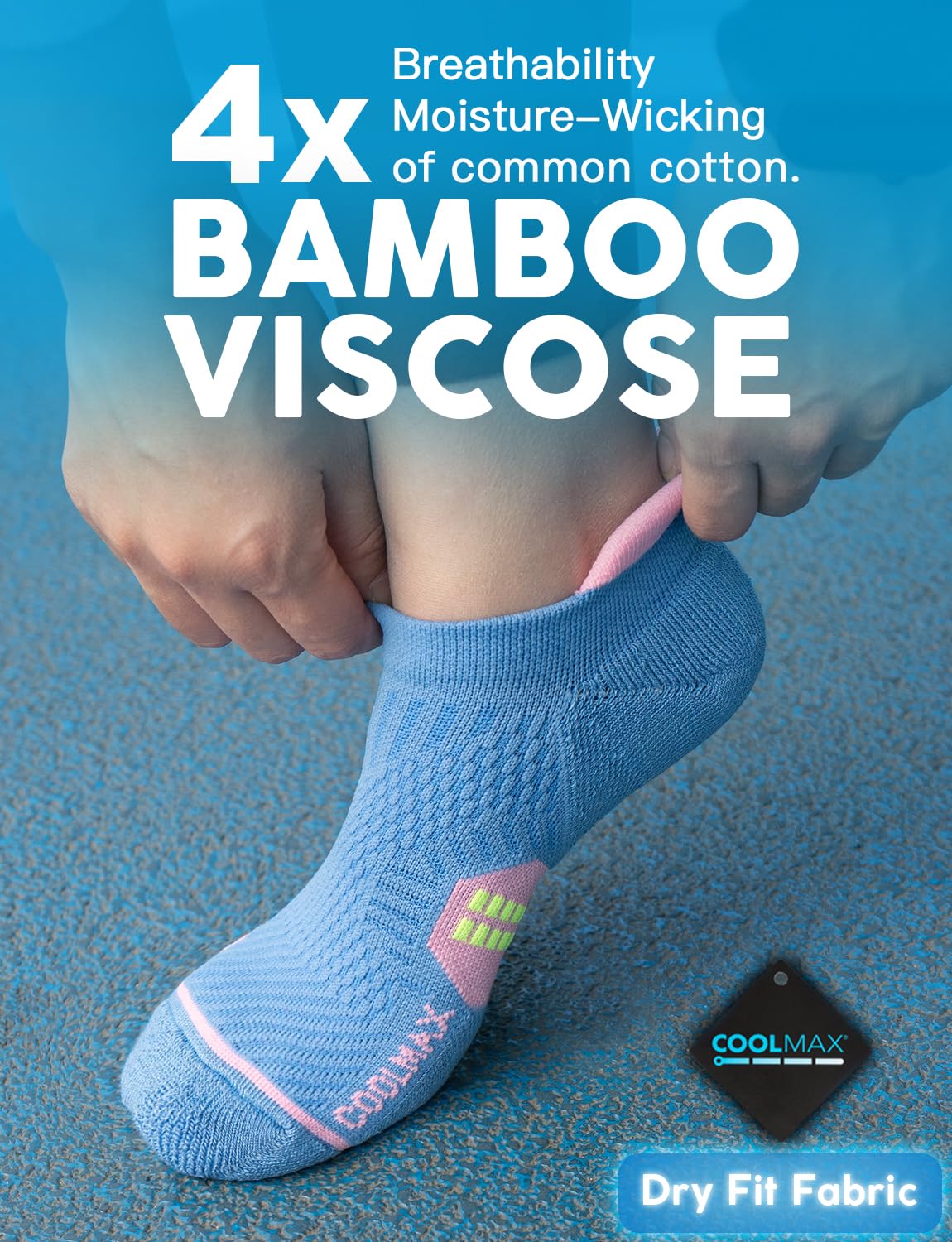 【Moisture-Wicking & Odor-Free】: Made from a blend of Coolmax yarn and bamboo viscose, these socks are four times more effective at wicking moisture than cotton socks. Coolmax absorbs sweat faster, keeping your feet cool and dry, while bamboo viscose prevents odors for fresh feet throughout your run.
