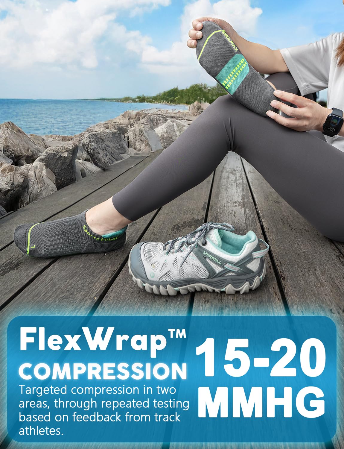 【Flexwrap Compression】: Tested and designed with 15-20mmHg targeted compression for the arch and calf, reducing muscle vibration upon impact. Minimize muscle fatigue, enhance your long distance running performance with every step, and promote quicker recovery times.