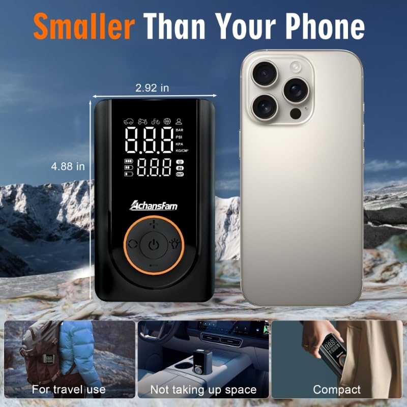 [๐๐จ๐ฆ๐ฉ๐๐๐ญ & ๐๐จ๐ซ๐ญ๐๐๐ฅ๐] This portable tire pump is lightweight and compact, easy to store at home, in your car, or in a backpack. Suitable for car and bicycle tires, sports balls, and inflatablesโperfect for travel and outdoor use.