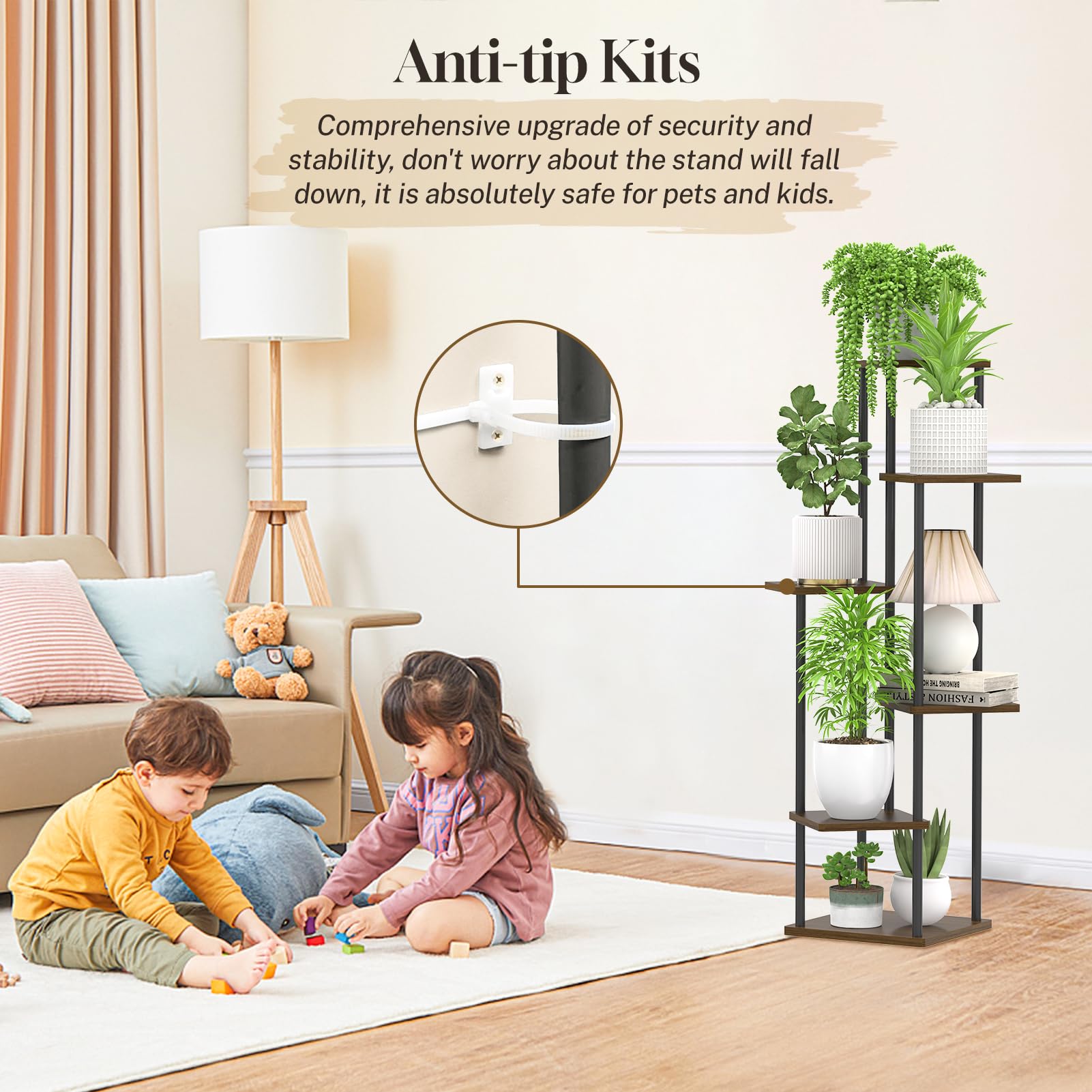 Wider Base, Greater Stability:Upgrade 6 Tier Plant Stand is 45" high overall, the large wooden board size at the bottom is 11", wider and thicker base is enough to maintain the stable and balance and superior weight-bearing performance—no wobbling, no tipping, just reliable support for all your plants!