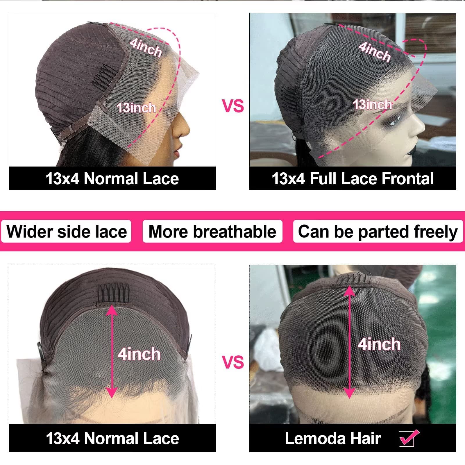 Lemoda Full 13x4 Lace Frontal Wig Advantages--It is an upgraded version of lace products. The sides of the lace cap are wider and can be separated as needed, making it more natural, breathable, and fitting to the skin when worn. The lace is handmade by professional craftsmen.High-quality lace front wigs are long-lasting and not easily damaged or deformed. They can be used frequently and maintain a good appearance and condition