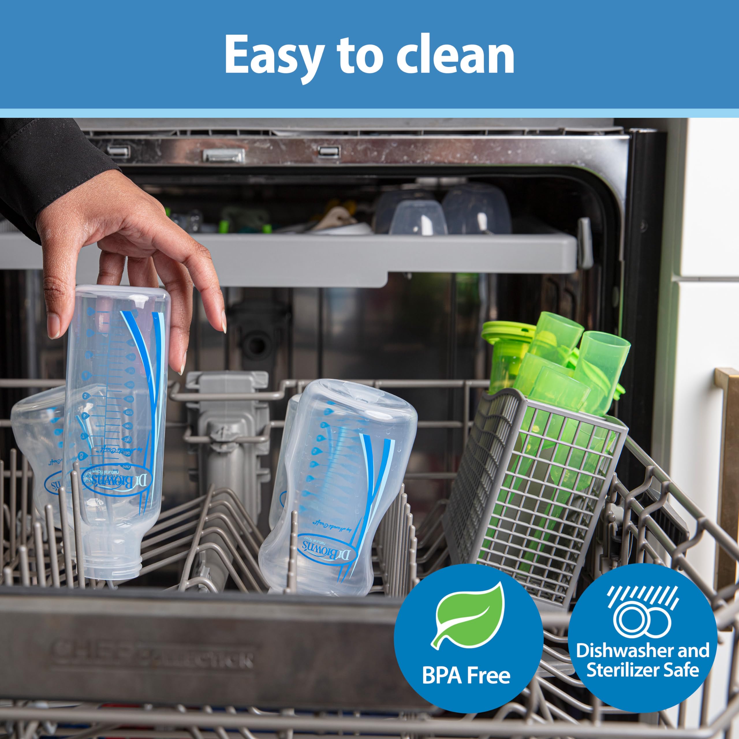 EASY TO CLEAN. Dishwasher (top rack) and sterilizer safe, BPA free.