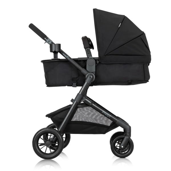 The Evenflo® Pivot® Modular Travel System is the multipurpose travel stroller you’ve been searching for! This exceptional carriage, stroller and car seat combo is a durable travel system that includes the LiteMax™ Infant Car Seat. The modular frame can be configured with up to 6 modes of use, allowing your child to be parent-facing or forward-facing. The stroller offers multiple modes, including carriage mode, toddler mode, or a frame stroller with infant car seat. For comfort, carriage mode allows your baby to fully recline and stretch out. The toddler seat has a maximum weight of 50 lb, with height recommendations of up to 38 in. (96 cm), while the car seat has a maximum weight of 35 lb and up to 32 in. The LiteMax Infant Car Seat provides a stay-in-car convenience base with an integrated belt lock-off system to help ensure secure installation in no time. The feature-rich stroller includes cruiser tires to make it easy to navigate over multiple surfaces, a large canopy with a peek-a-boo window, an oversized storage basket, removable arm bar with cup holder and snack tray, and convenient self-standing fold. At Evenflo, we go above and beyond government standards to create car seats that are safe. The Evenflo LiteMax Infant Car Seat meets or exceeds all applicable federal safety standards. It is structural integrity tested at energy levels approximately 2x the federal frontal crash test standard, and it is rollover tested and temperature tested. If you need help installing your car seat, our ParentLink® Consumer Care Team offers help online in real time. Get live video support with a certified car seat safety technician to ensure proper vehicle installation, so you can drive with confidence. Families have trusted Evenflo for more than 100 years for smart, innovative gear designed to make life easier, safer and more comfortable at home and on the go. We believe every moment with your growing little one counts — that’s what drives us to find new ways to simplify the work of parenting and caretaking. With the time and peace of mind you need, you can focus on what matters most: your child.