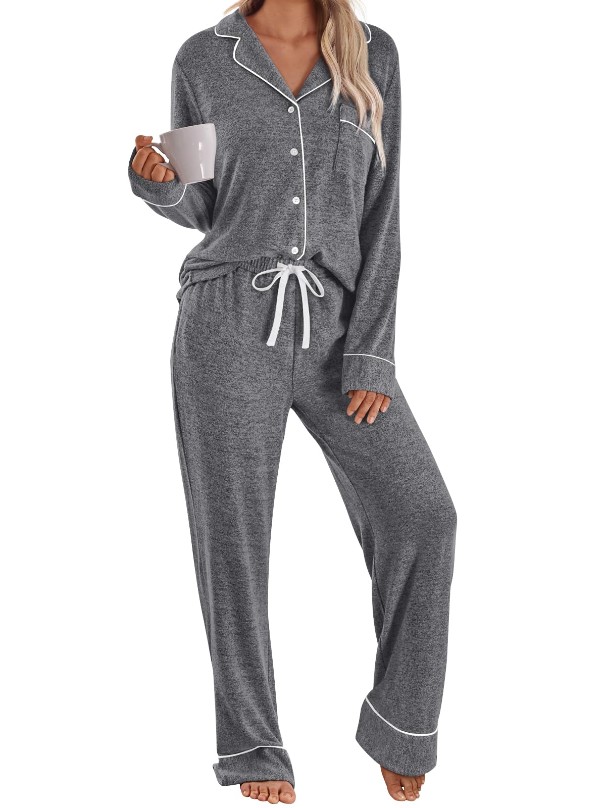 HIGHT QUALITY MATERIAL-- 60%Polyester/ 35%Rayon/5%Spandex.Pajama boasts a supple blend of super-soft jersey, Comfortable and soft touch, bring warmth and pleasant mood to your homeοΌSuitable for spring, autumn, winterοΌ
