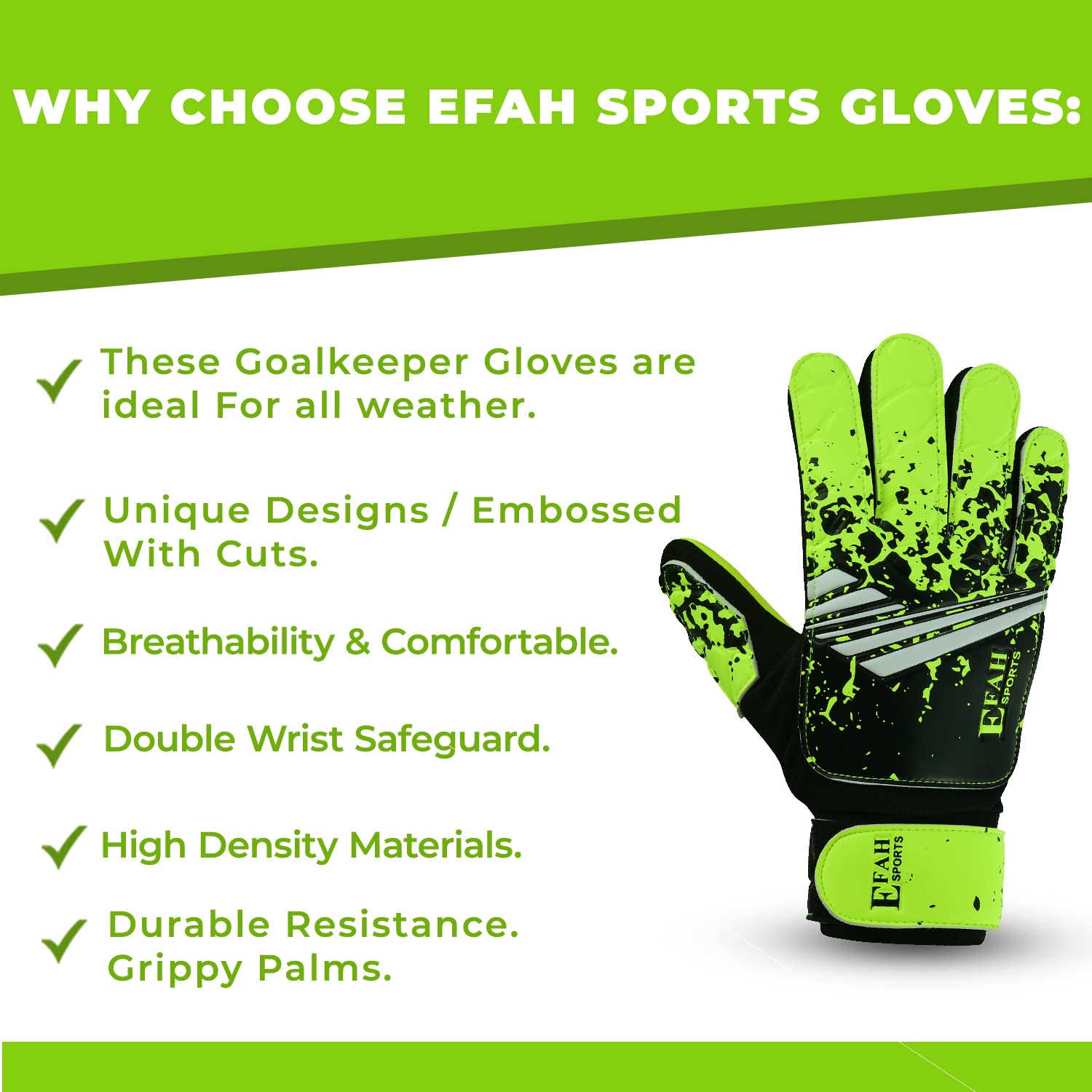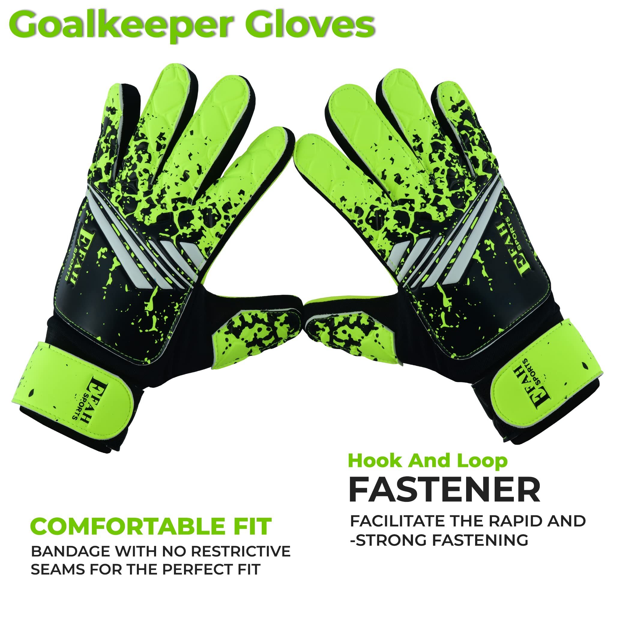 DESIGNED FOR GOALKEEPERS - These soccer goalkeeper gloves are designed with Hook And Loop that helps you with wrist support and adjusts the gloves for a perfect fit. These goalkeeper gloves are perfect for matches or training.