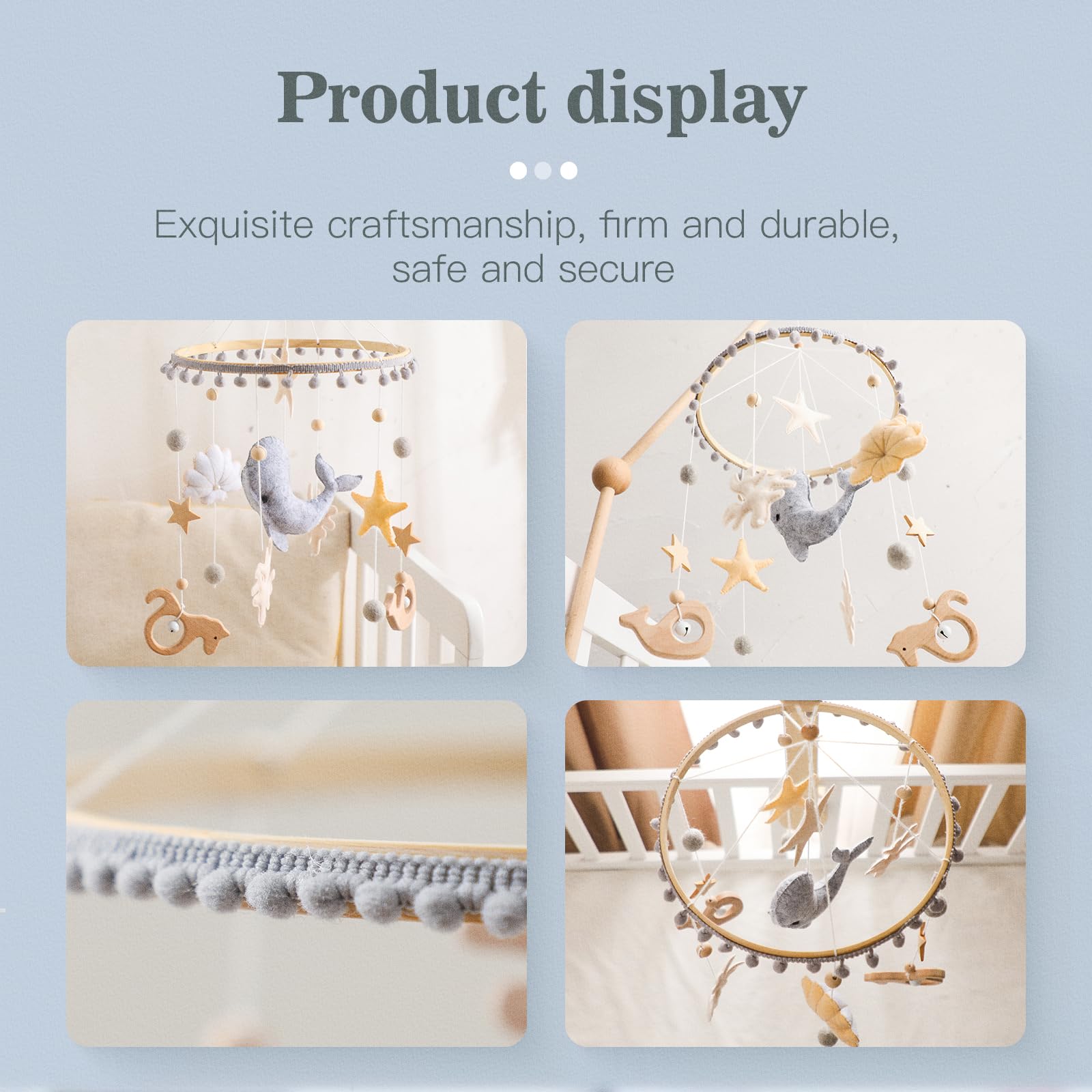🐬VERSATILE AND GENDER-NEUTRAL - This handmade mobile is not only a perfect gift for newborns, new moms, expectant parents, or baby showers, but also as a beautiful prop for baby's photography. With its soft and neutral colors, this crib mobile is suitable for both baby boys and girls, makes it an attractive addition to any room.