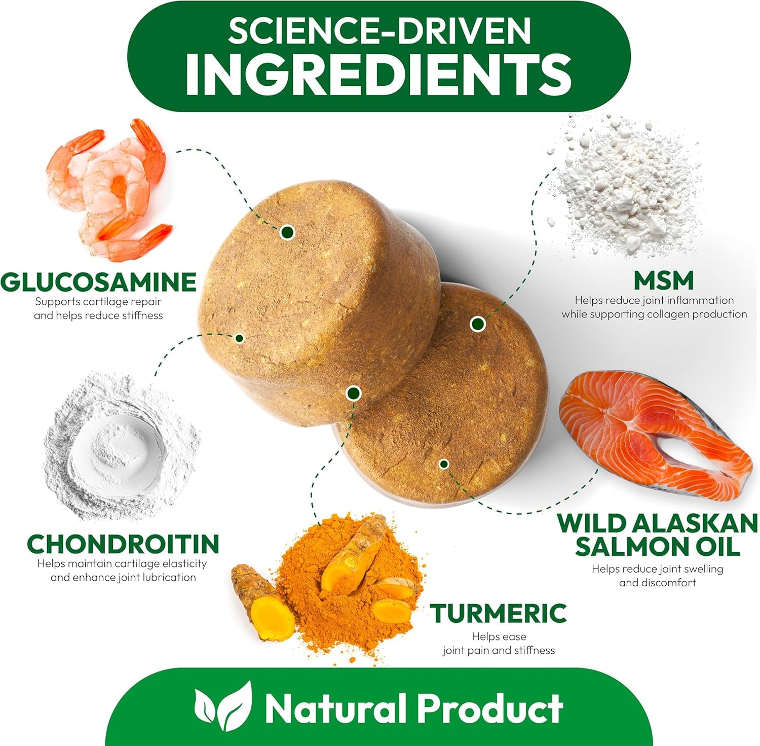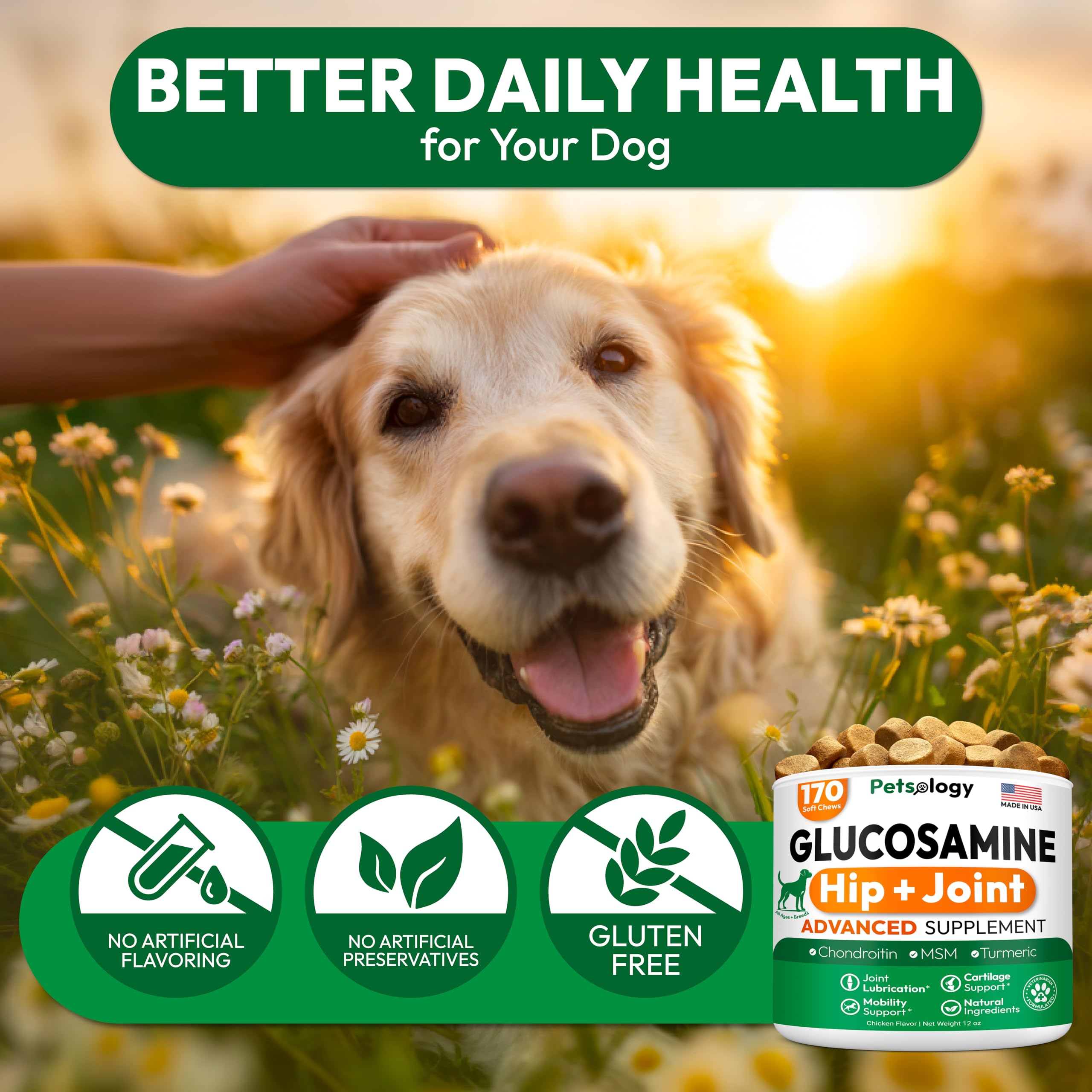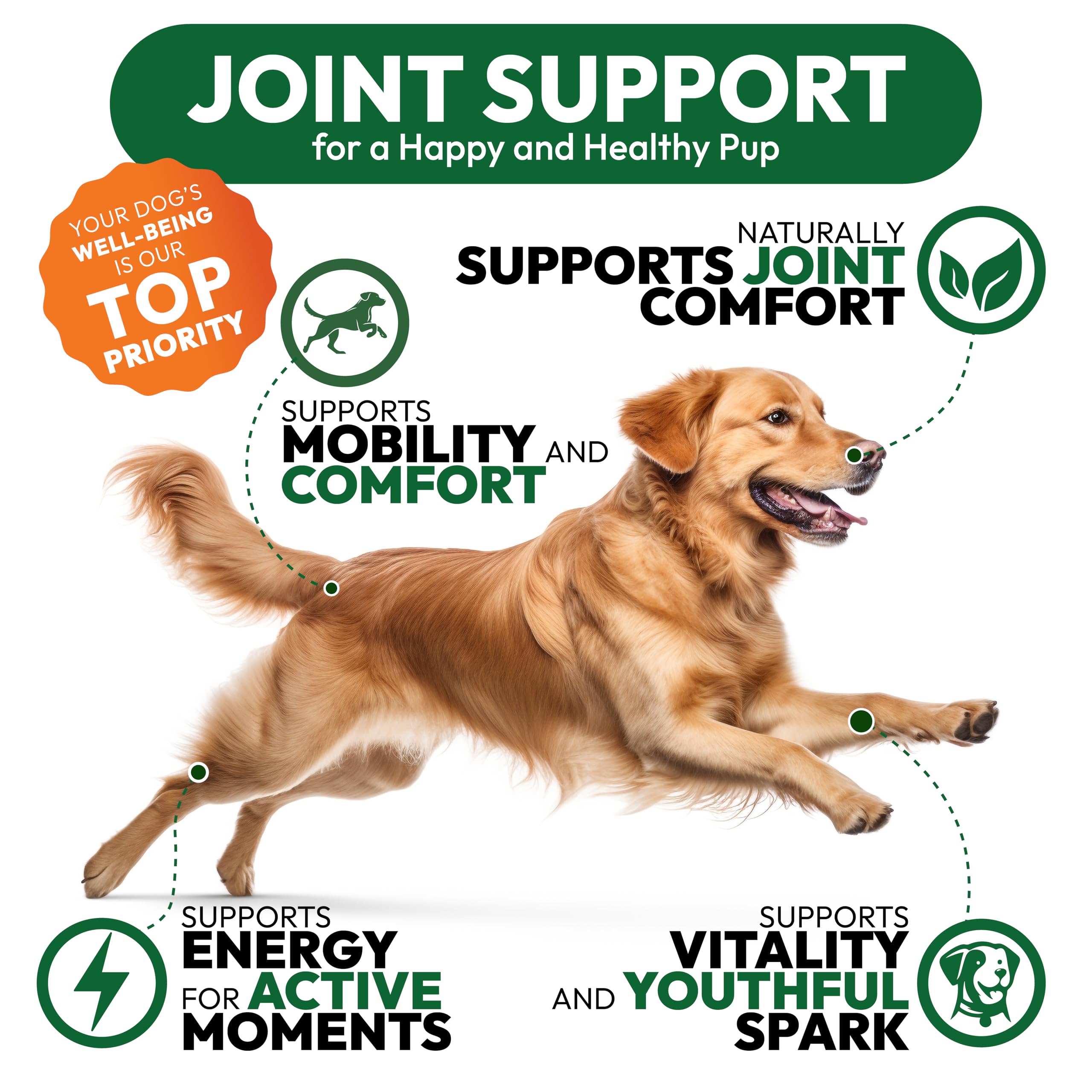 Premium and Natural Ingredients Formulated by Veterinarians: Our vet-developed formula features natural, high-quality ingredients without artificial additives, providing dog hip and joint support.