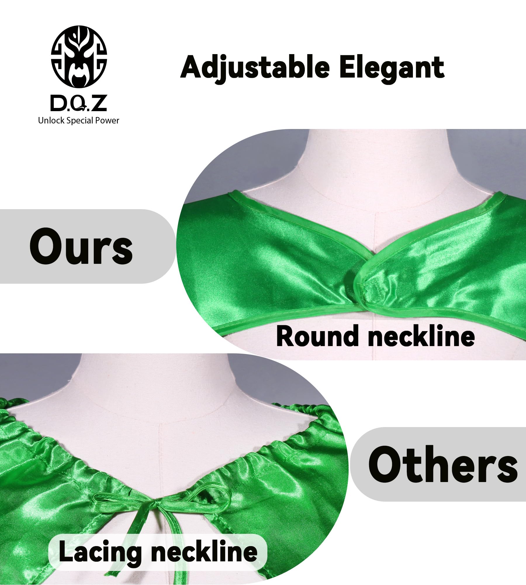 Adjustable Neckline: Round neckline with adjustable Hook and loop fastener, is more comfortable and elegant. It is easy for you to wear this superhero cape whatever occasions you are.