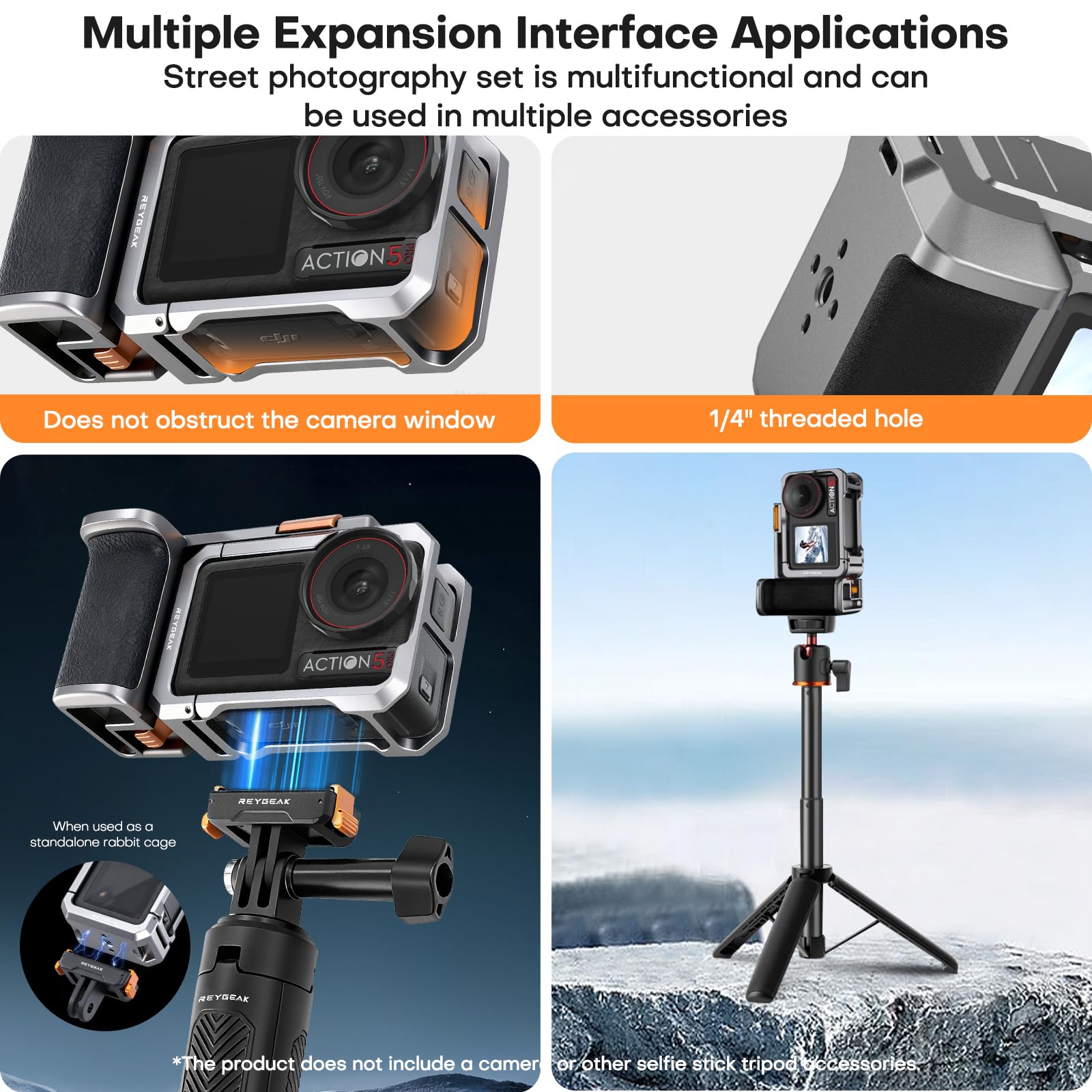【Multifunctional Action Camera Street Photography】Whether used as a professional street photography device or as a standalone camera cage, the included 1/4-inch screw allows for easy attachment to tripods, gimbals, selfie sticks, or other action camera accessories. The cold shoe mount on the top is compatible with LED lights, microphones, or professional equipment, offering unlimited shooting possibilities.