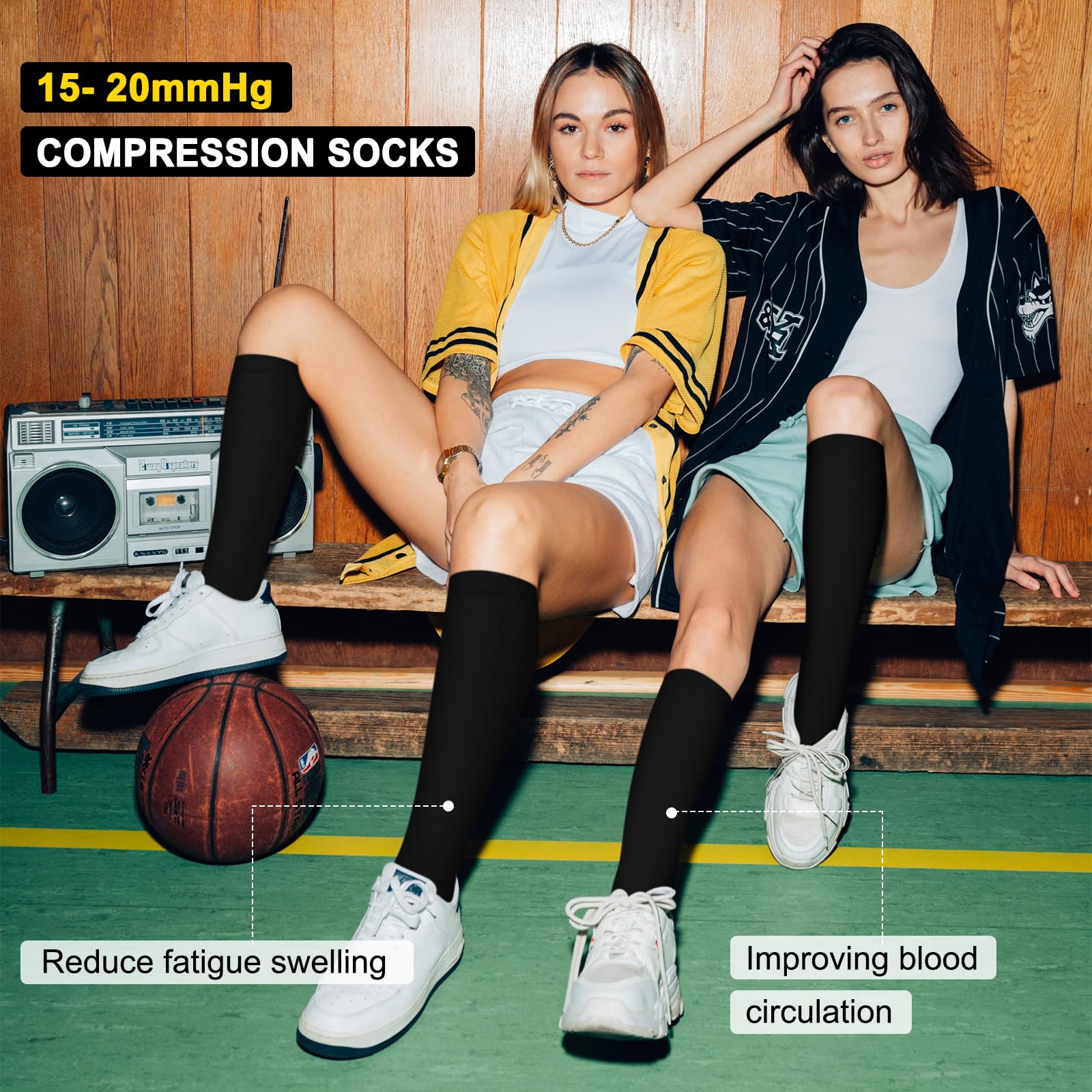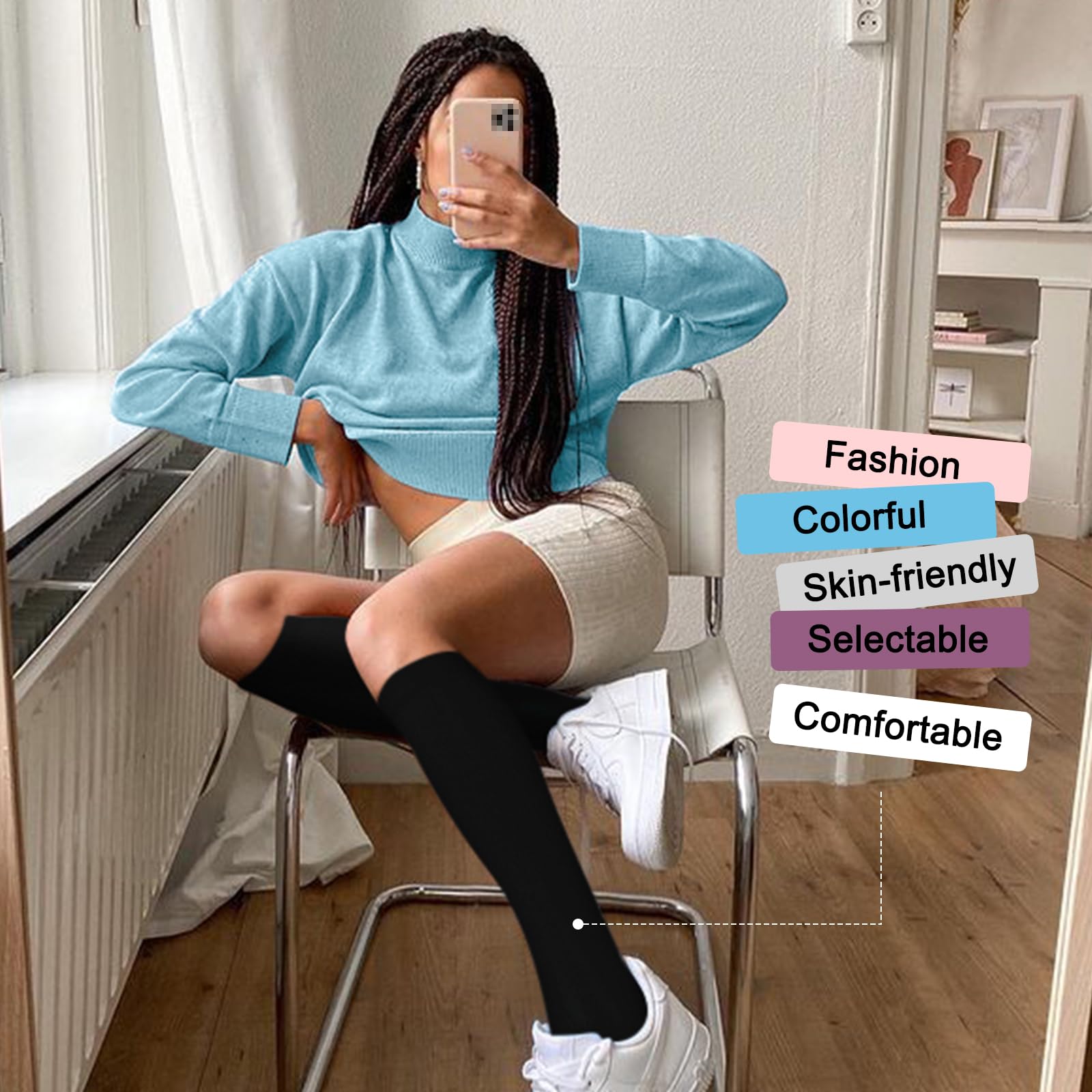 COMFORTABLE WEARING EXPERIENCE - Our compression socks fit snugly from toe to calf, injecting vitality into your skin. Delivers 360-degree stretch for greater flexibility and durability, without leaving marks on your skin. Wide Top Comfort Band Keeps the socks from pinching,chafing,or rolling down. All-Day comfort,support & energy,perfect for your active lifestyle.