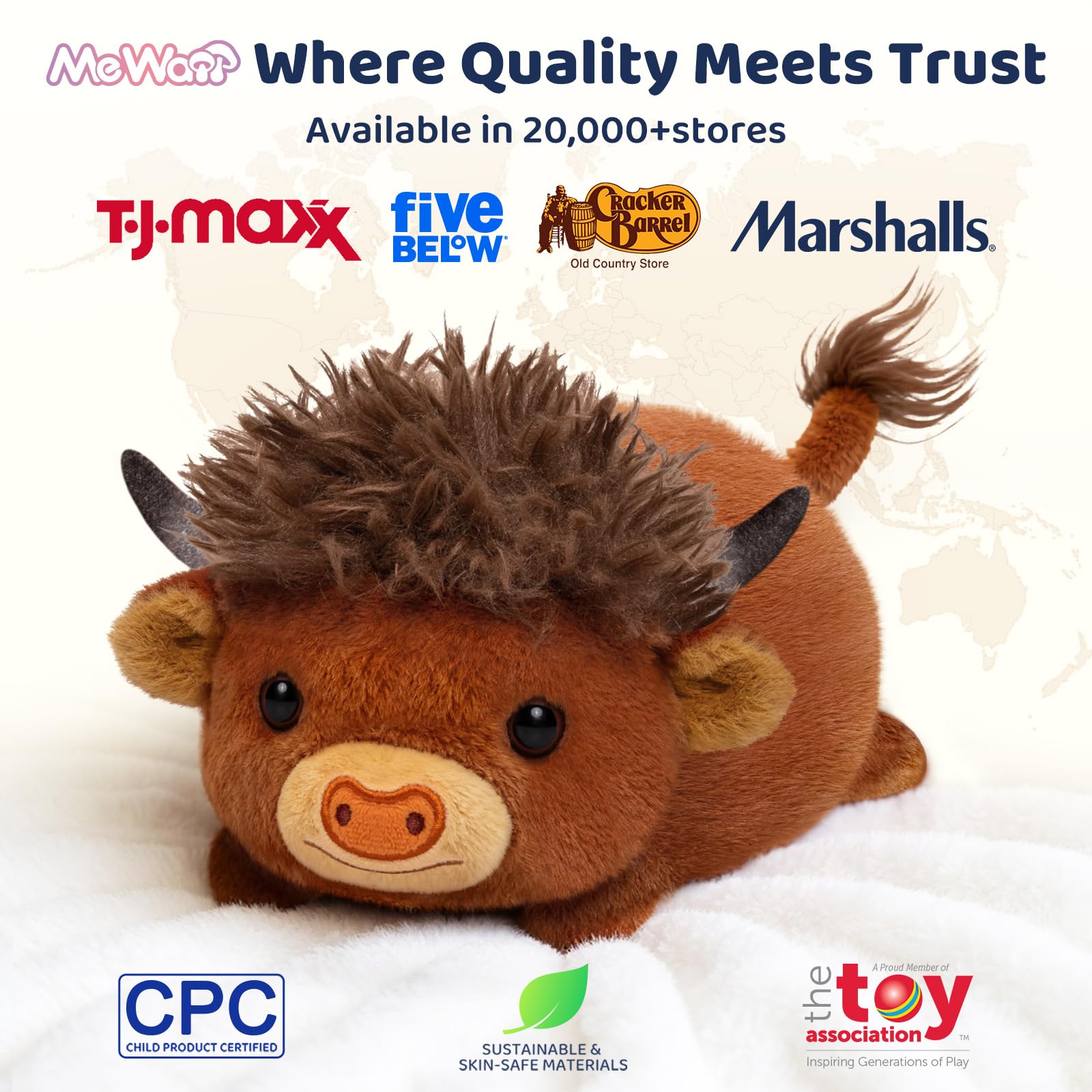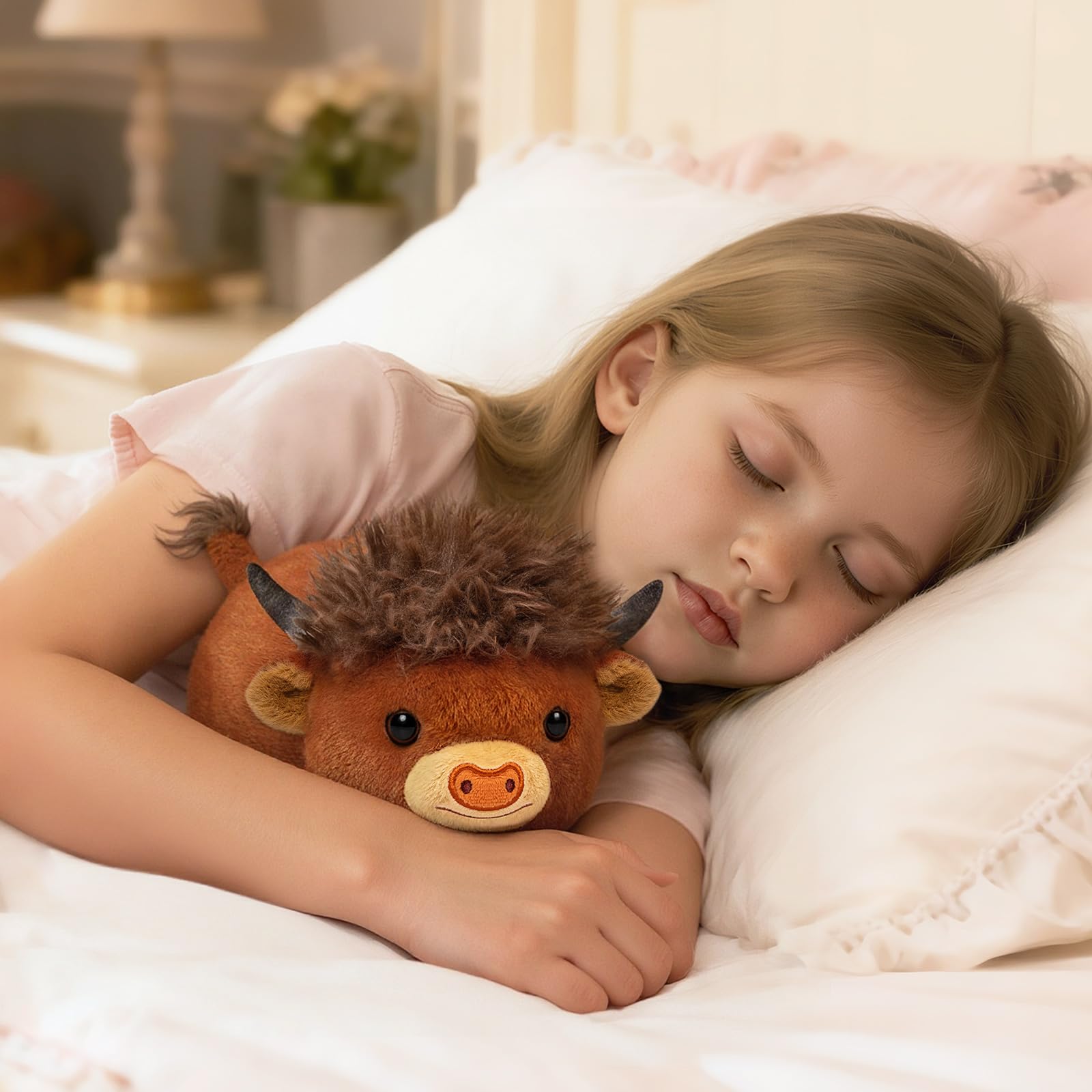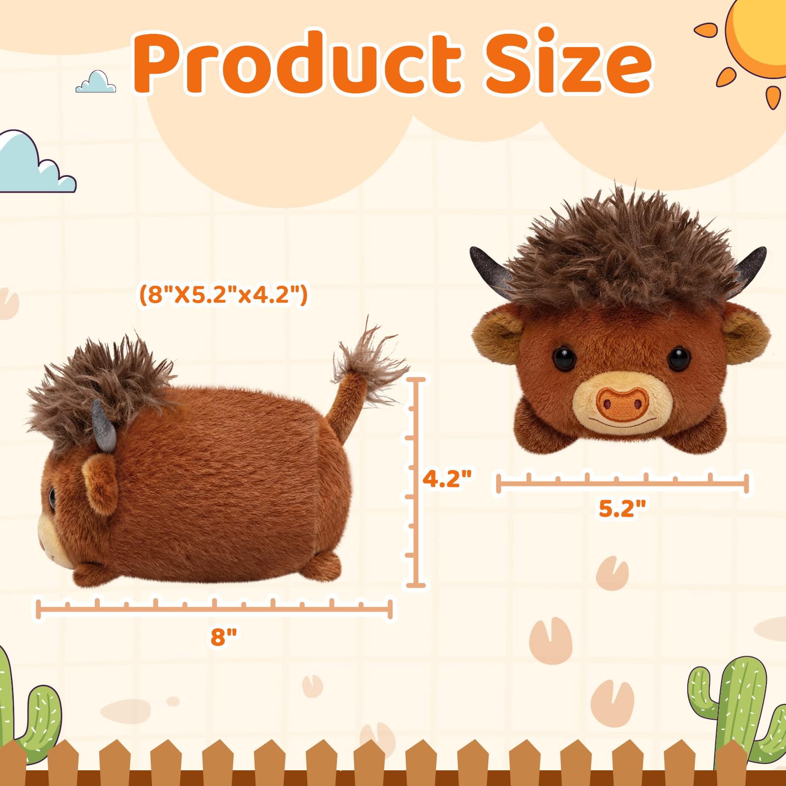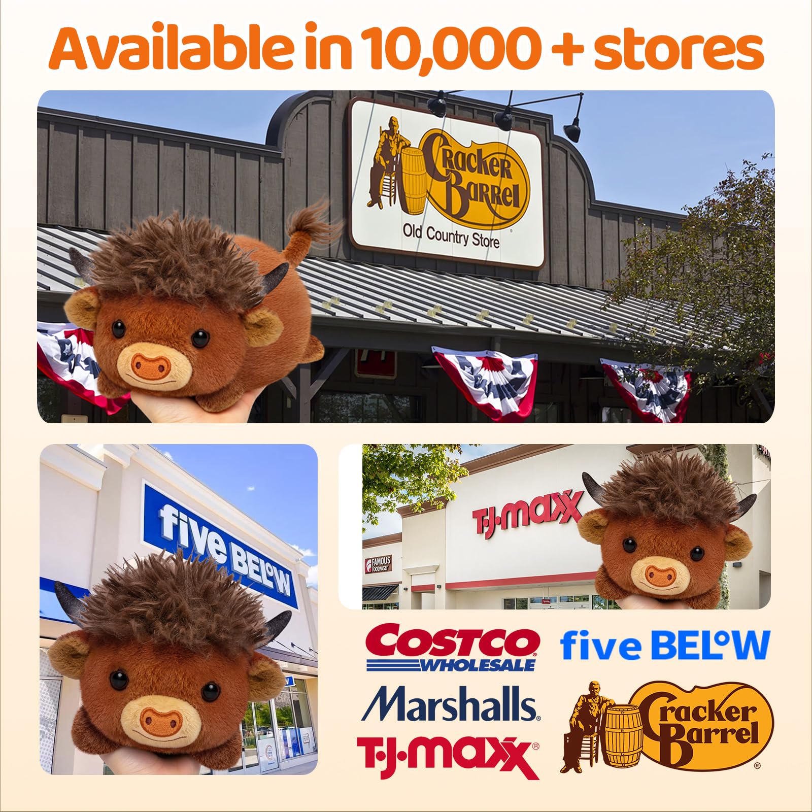 Adorable Highland Cow Look - Cheerful front-facing expression, floppy horns, and fluffy fringe capture classic Highland cow charm. A delightful accent for farmhouse-inspired rooms, shelves, beds, and reading nooks.