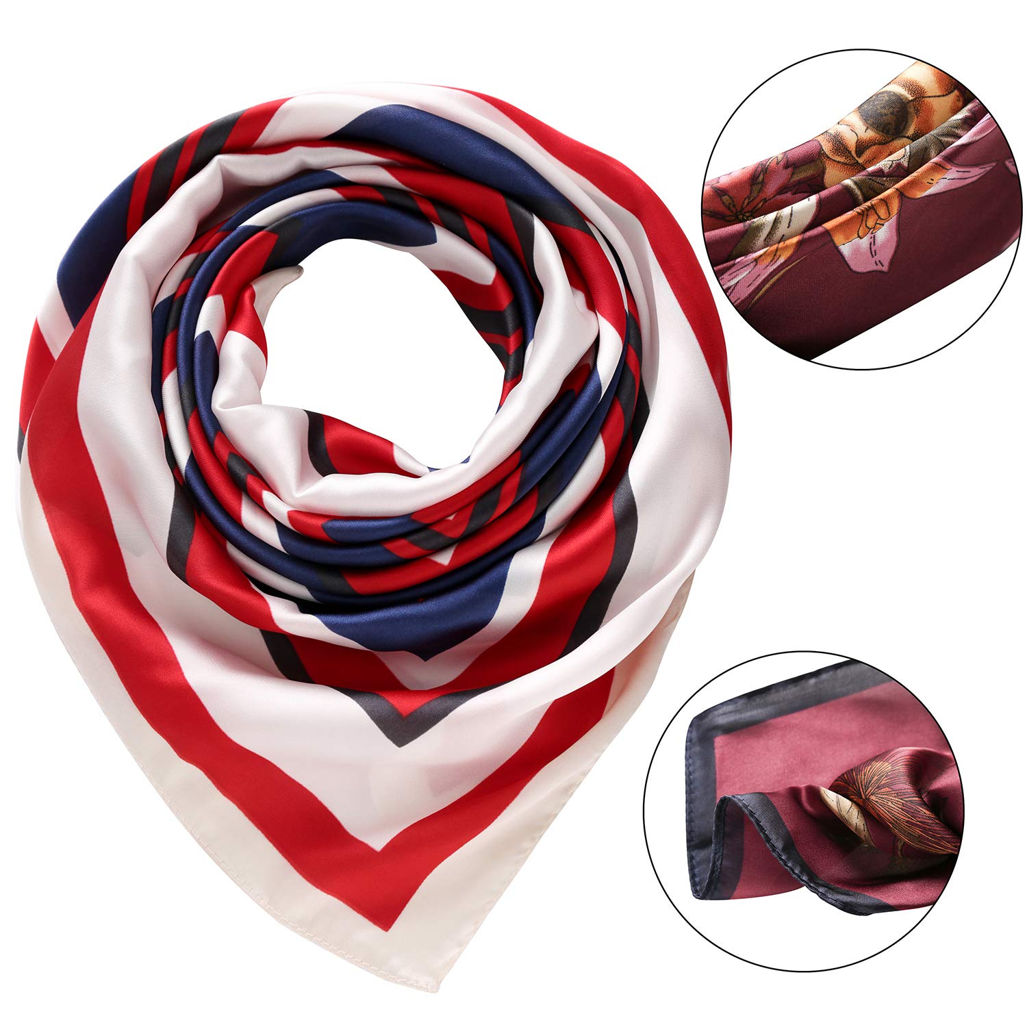 WIDE APPLICATION: Size of the square scarf is 27.5'' x 27.5'', which can be used as a headband, neckerchief, headscarf,babushka,neck scarf, waistband and hair scarf as well as for hat and handbag decoration.