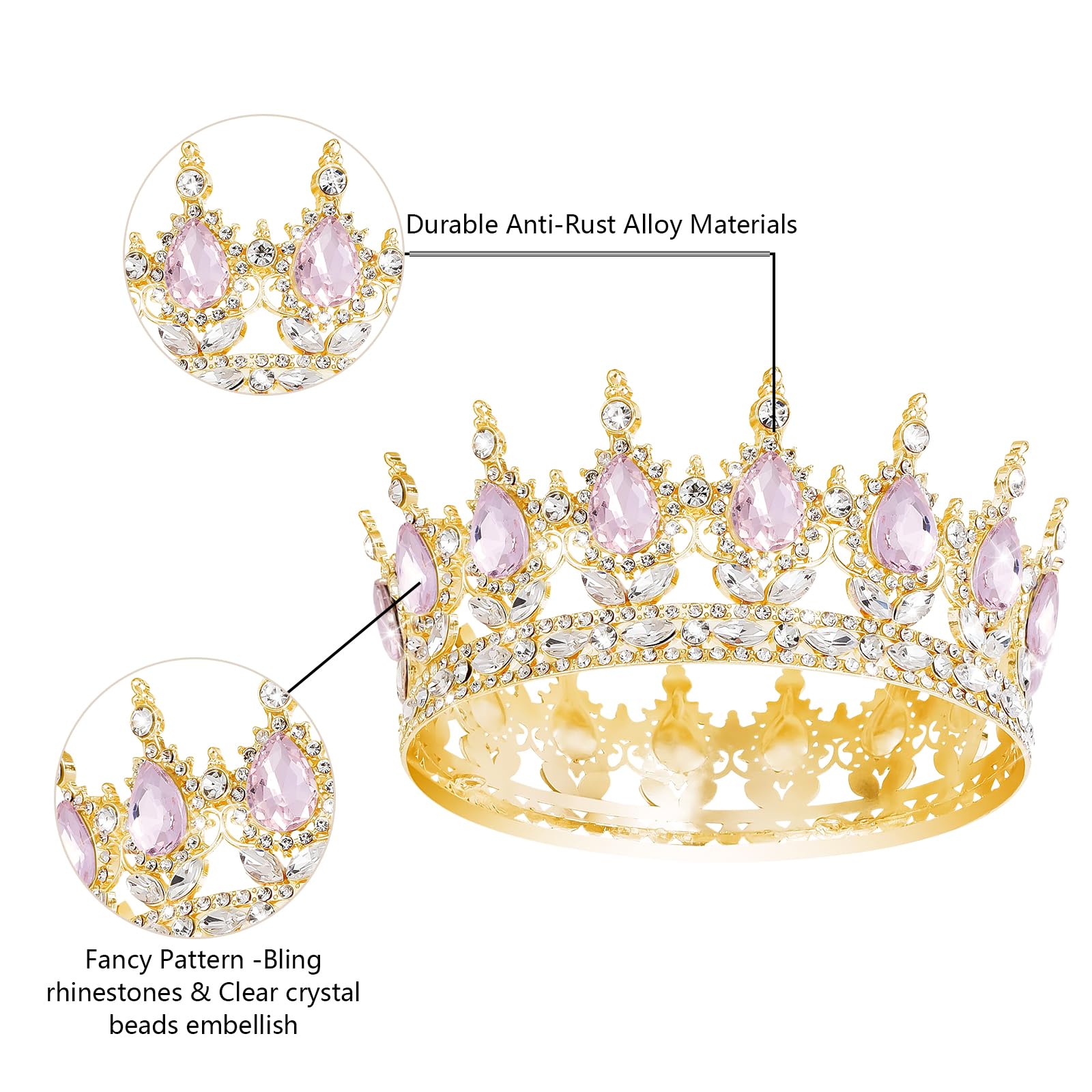 SIZE - 2.7 inches (7 cm) in height, 5.9 inches (15 cm)in diameter. Full crown design, crafted specifically to fit women head size and perfectly fit in your glamorous hairstyles.
