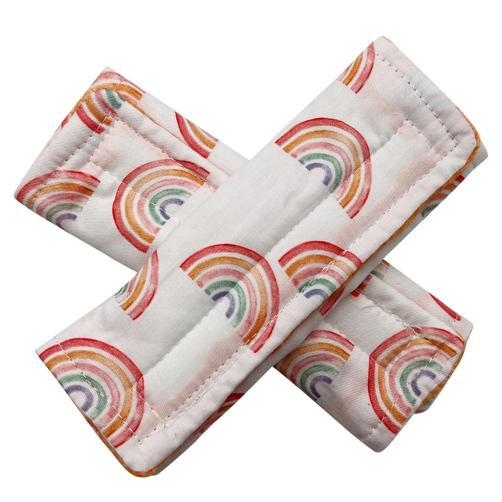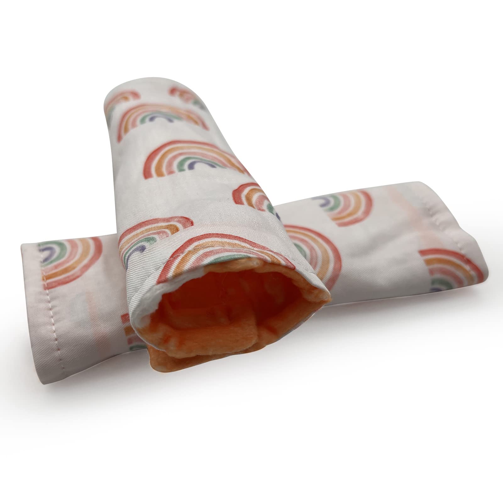 🌷RAINBOW: Our car seat strap pad is designed with one side minky fabric and one side adorable rainbow print. You could use in minky style or rainbow style