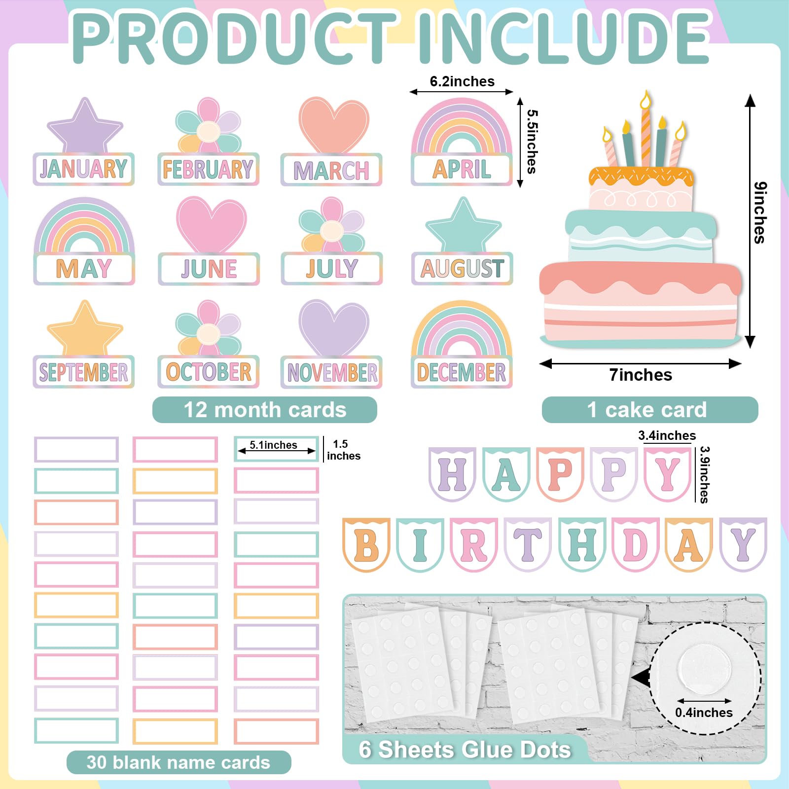 Unique Design - This happy birthday chart for classroom use bright and delicate colors, unique and attractive, the HAPPY BIRTHDAY cutout and cake cutout can well add a happy and warm atmosphere, leave a deep impression.