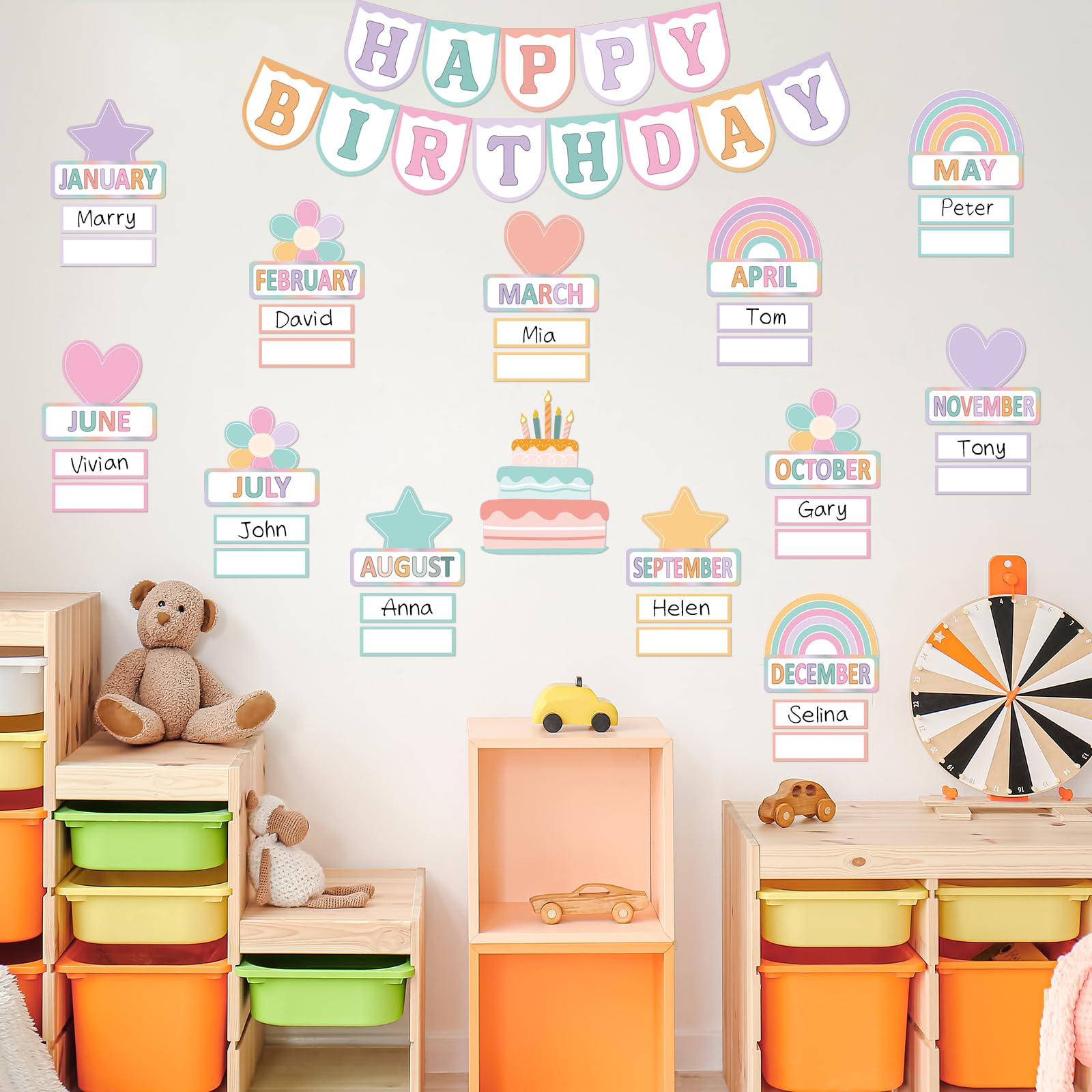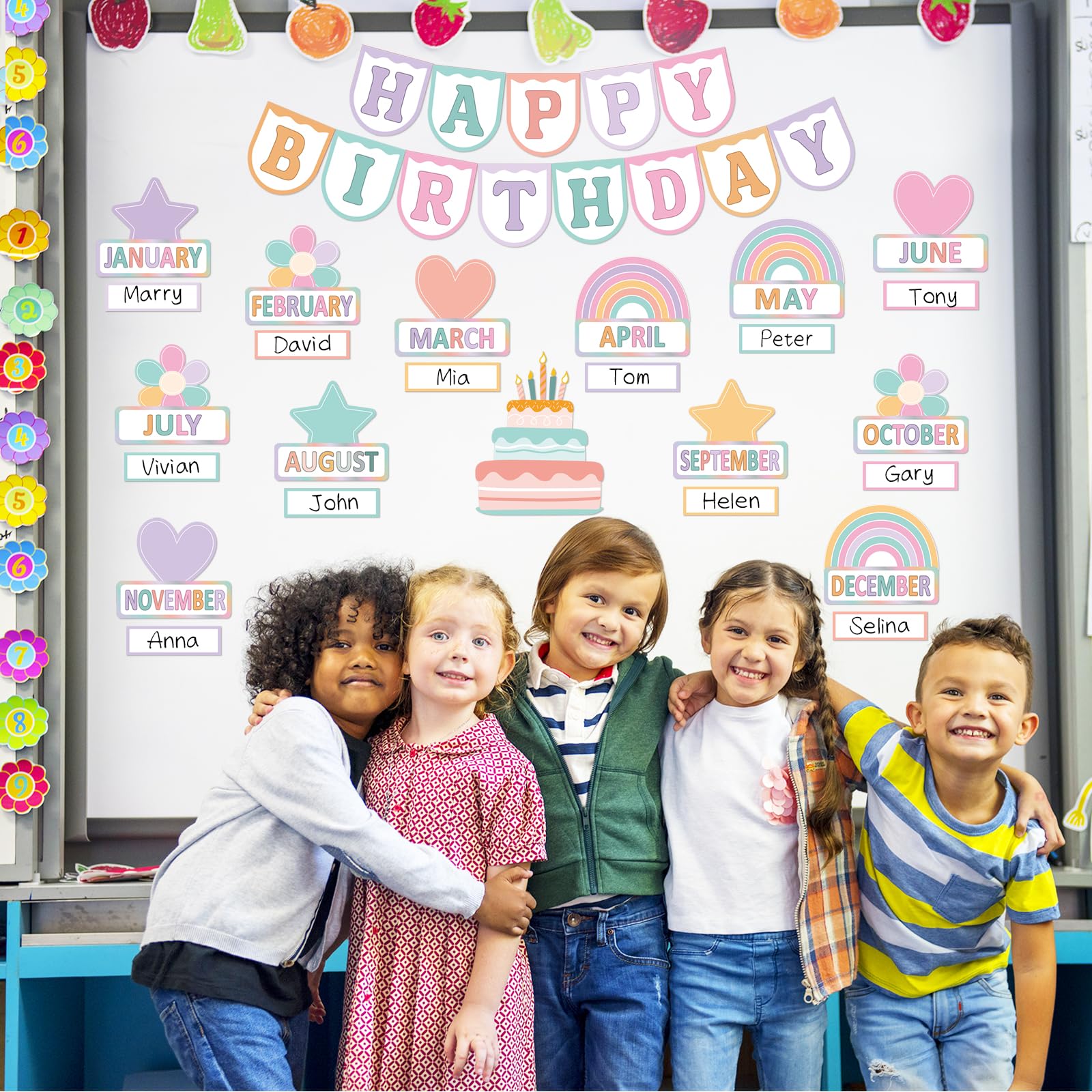 EASY TO USE: This birthday chart for classroom can be attached to the wall with a bit of glue according to the month as you wish. You can also mix and match other cute decorations according to your creativity. Also you can write the name of the student whose birthday corresponds to the month. Birthday wall for classroom is very easy to install!