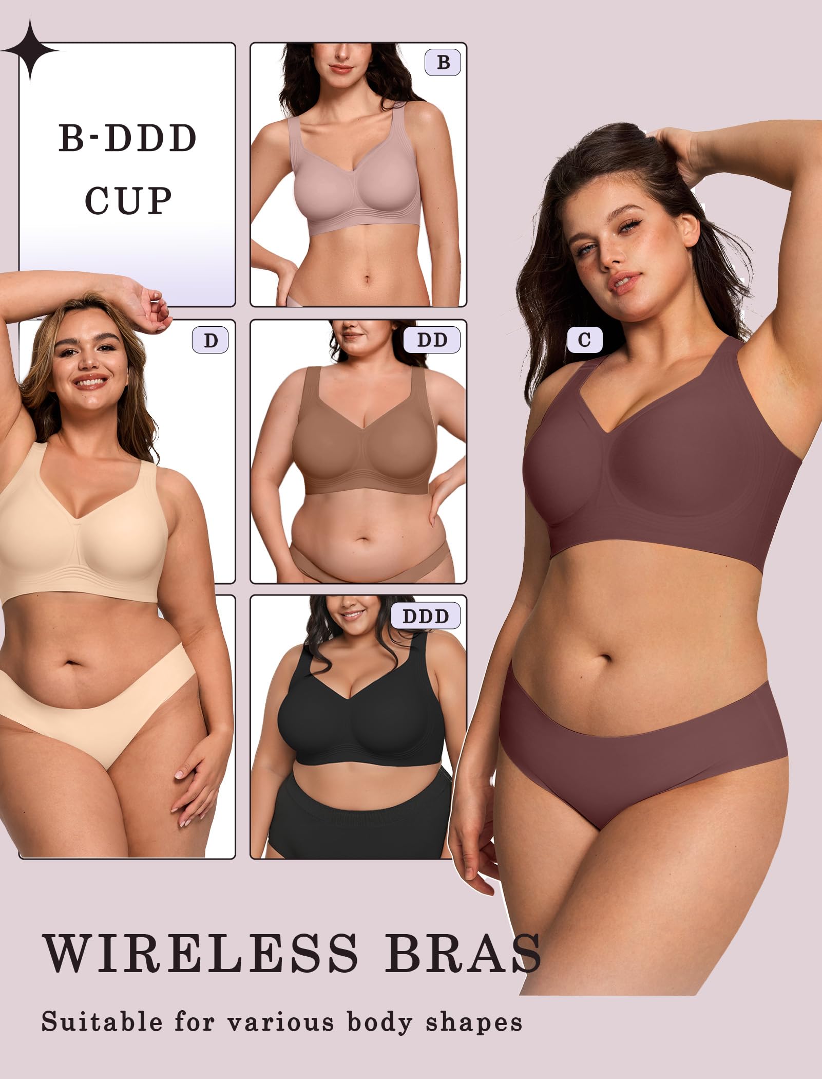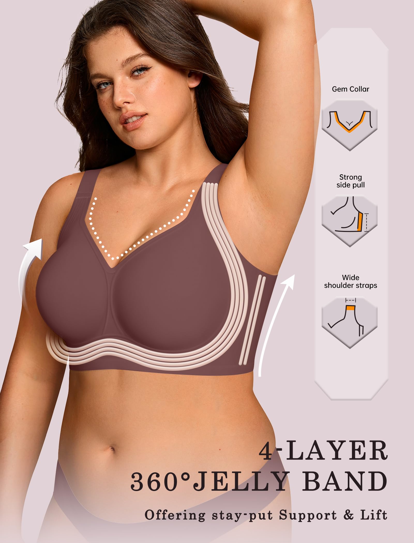 Full Coverage Bras No Underwire - The V neck Bras Designed with no wire to provide a natural relaxed fit while offering great support through 360° jelly bands, ensuring all day comfort. Lightweight bras keep skin cool and dry. The widened elastic band stays securely in place without rolling or shifting, ensuring stability during movement. A perfect combination of freedom and support for everyday wear.
