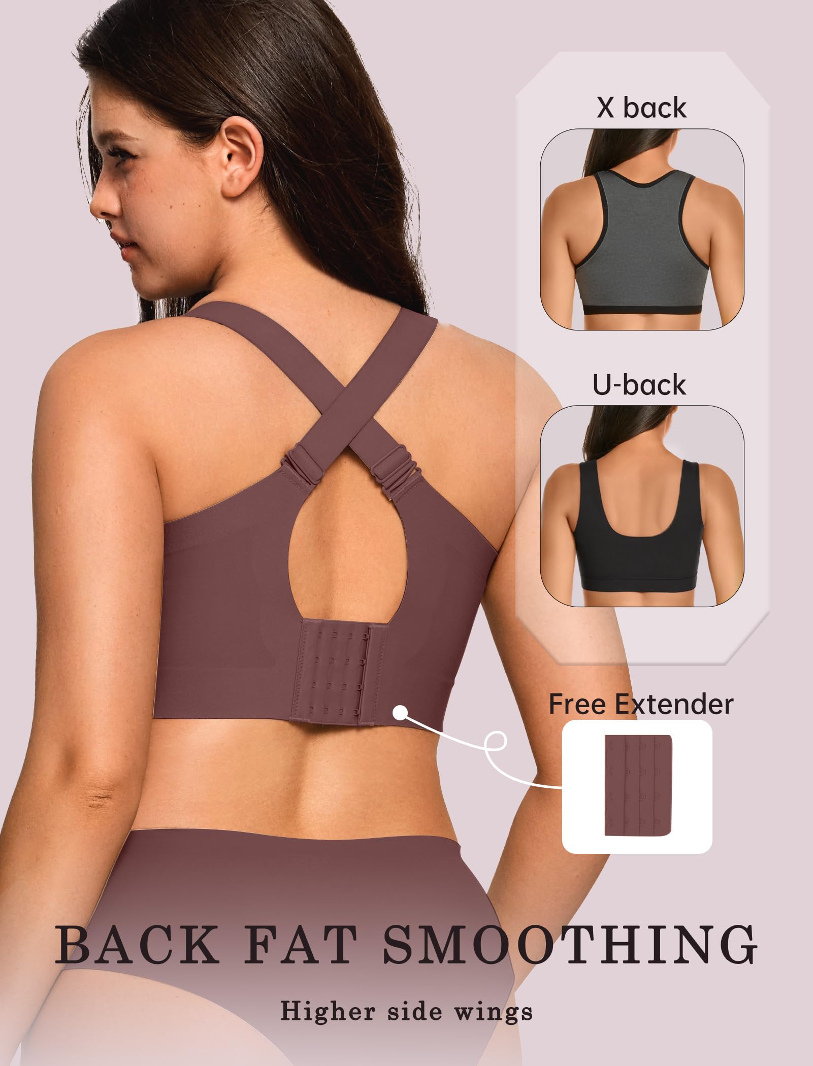 Widen Adjustable Straps - The bras reduce pressure on the shoulders, especially suitable for large chest. The wide shoulder straps prevent slipping or shifting, keeping the bra in place. Durable Straps offers all-day support and comfort. With special versatile strap design, you can easily switch between two stylish looks: sexy crisscross (X-back) or sleek U-back—no need for multiple bras!
