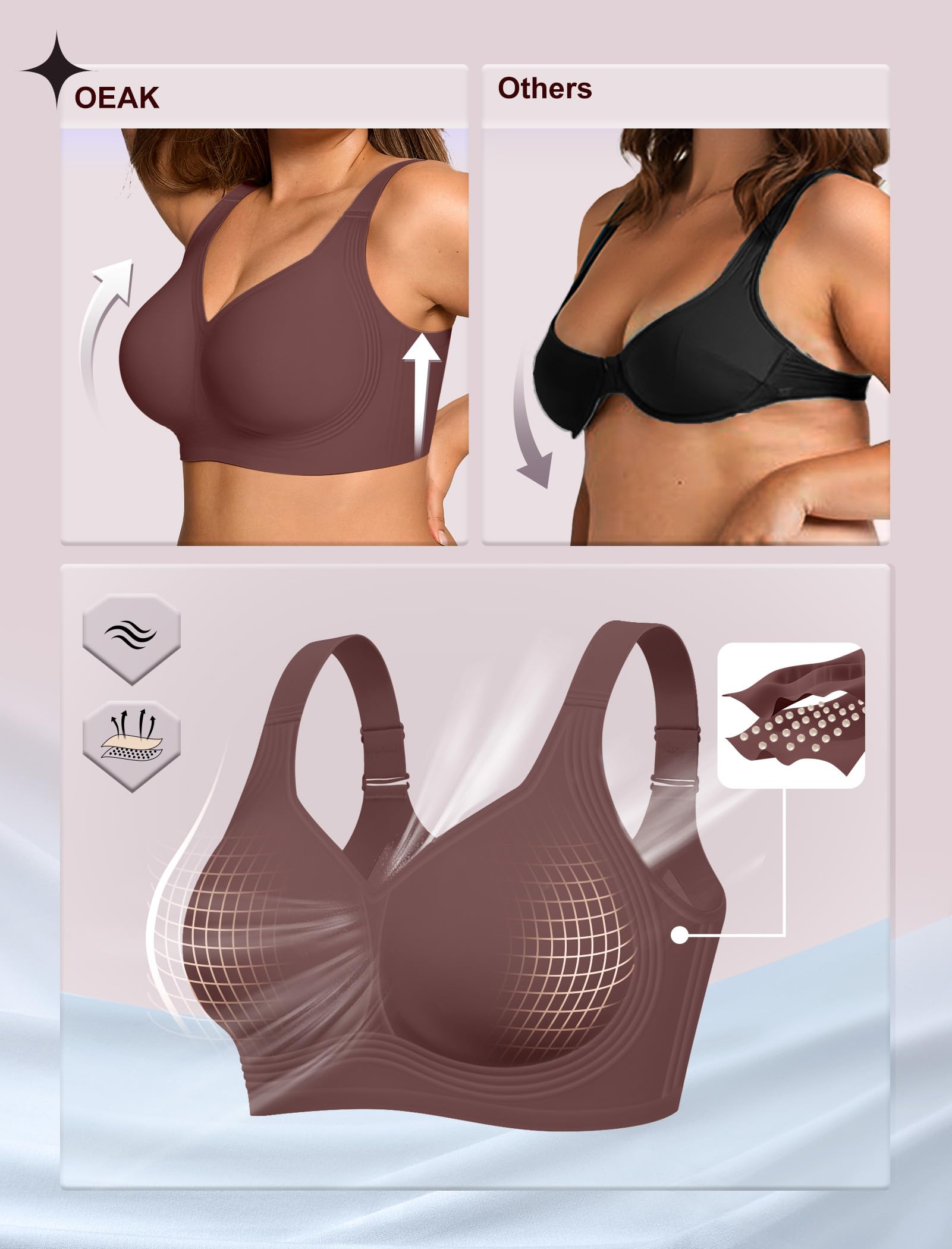 Seamless Tshirt Bras - OEAK Full Support Bras for women are perfect for work, lounging, dating, party, dancing or light activities-all day long. They can be worn under any clothing and serve as everyday bras, t-shirt bras, sleep bras, yoga bras, light sports bras, and pregnancy bras. Simply place the bra in a laundry bag before washing to retain its shape and elasticity. With proper care, it will stay as good as new for longer.