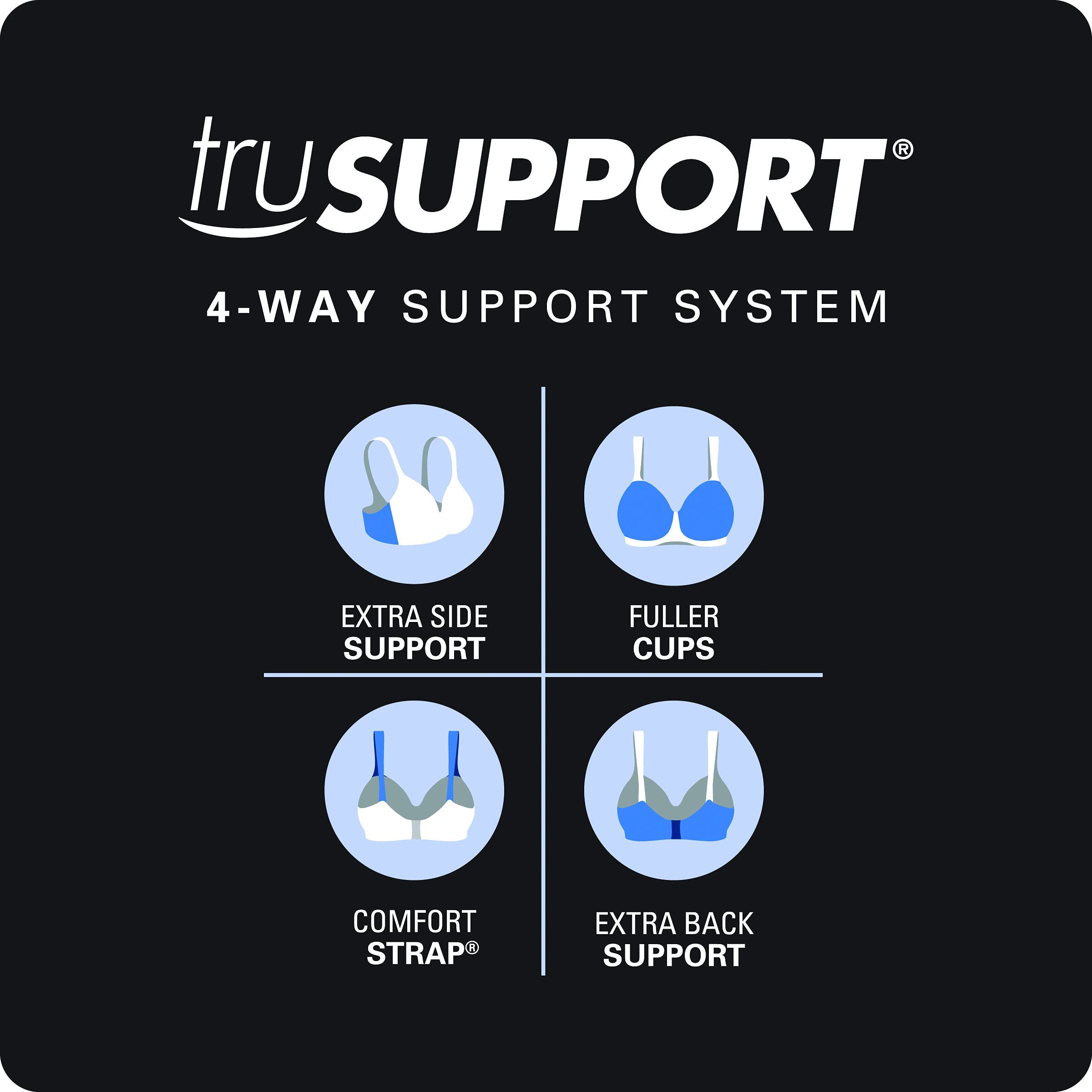 EVEN MORE WIRELESS SUPPORT - 4-way TruSUPPORT system provides higher sides for bulge control, fuller cups for natural shaping, wider, cushioned straps for all-day ease, and a smoother back for enhanced stability.