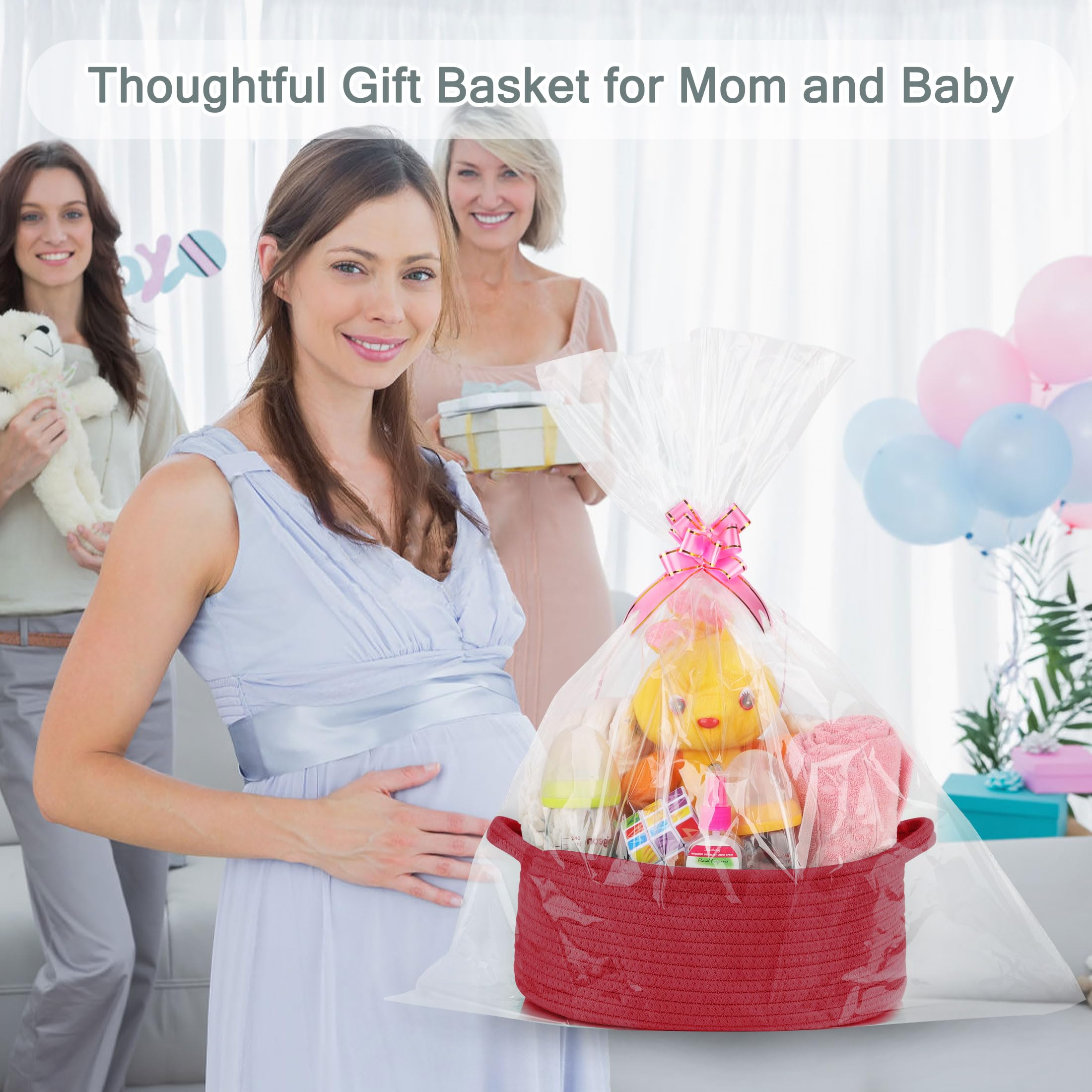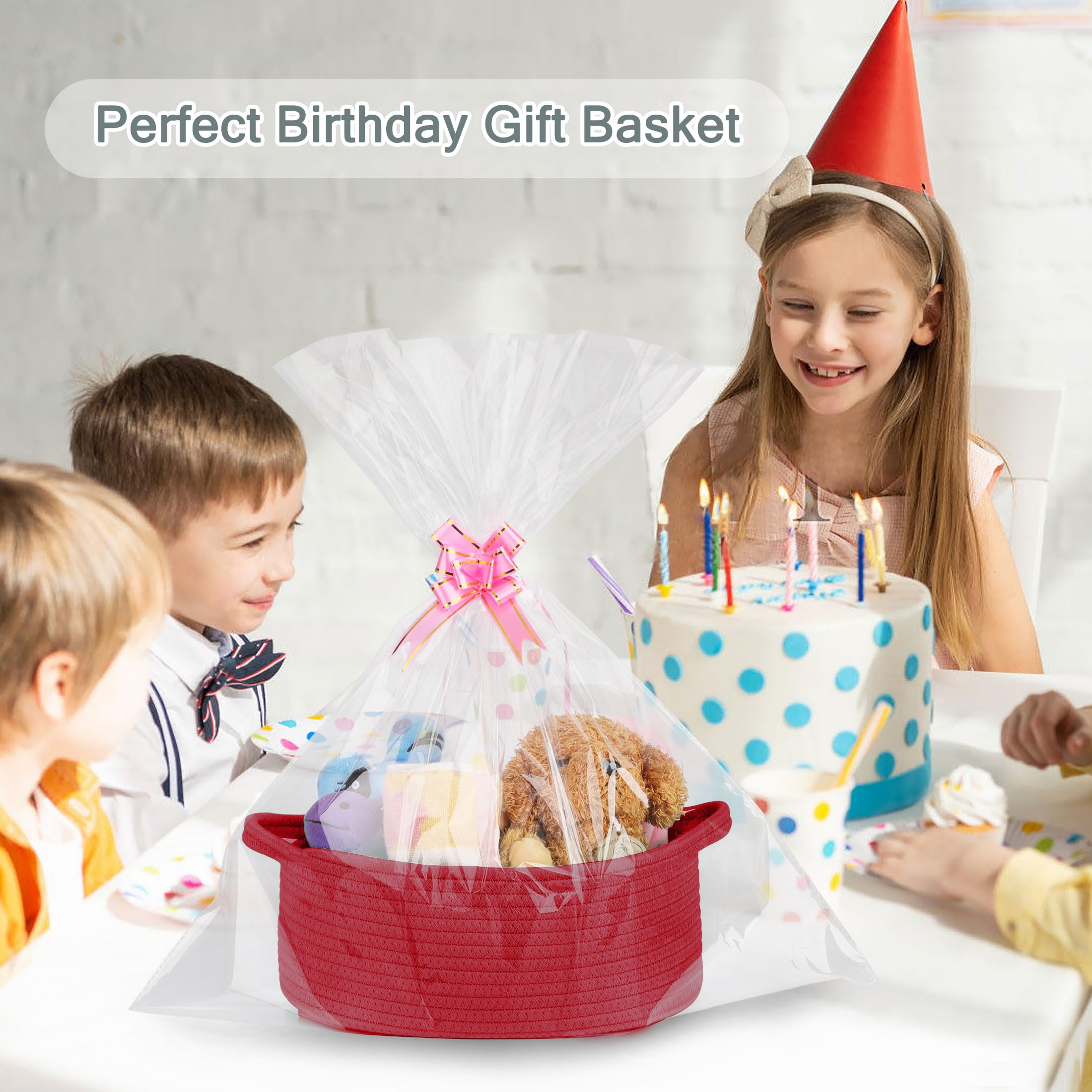 【Best Gift Options】 Our woven gift basket comes with one clear cellophane bag and three ribbons of different colors, which is very convenient for making gifts. It is a perfect choice for Birthdays, Baby Showers, Mother's Day, Father's Day, Valentine's Day, Graduation Gifts, Easter and Christmas. This small storage basket itself is a great gift.
