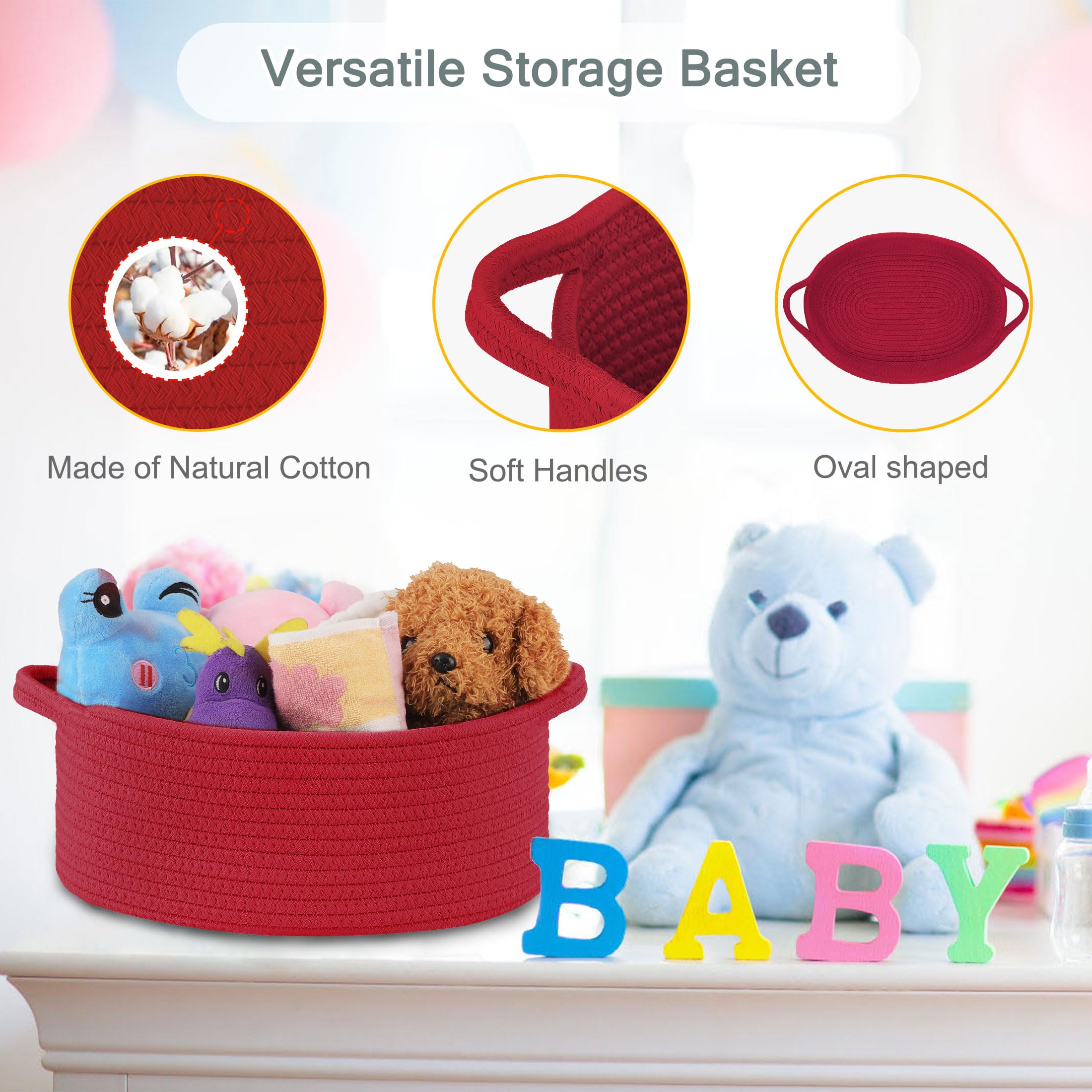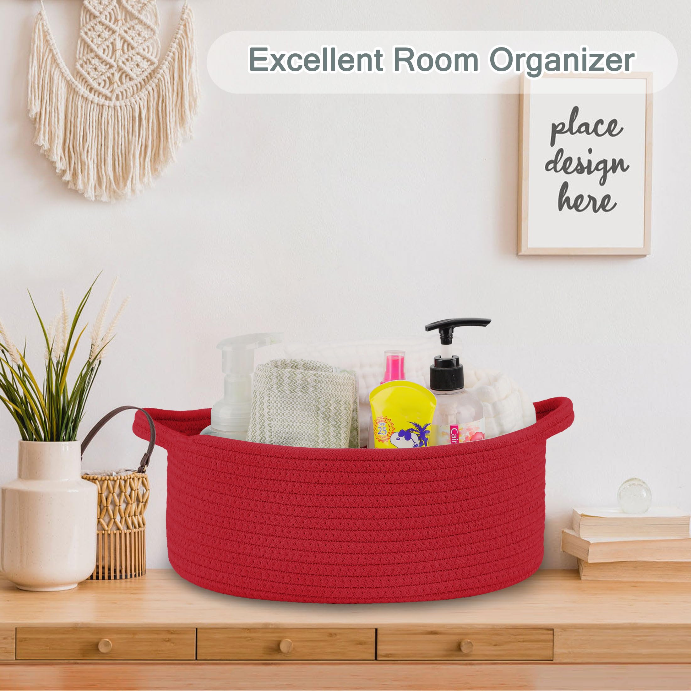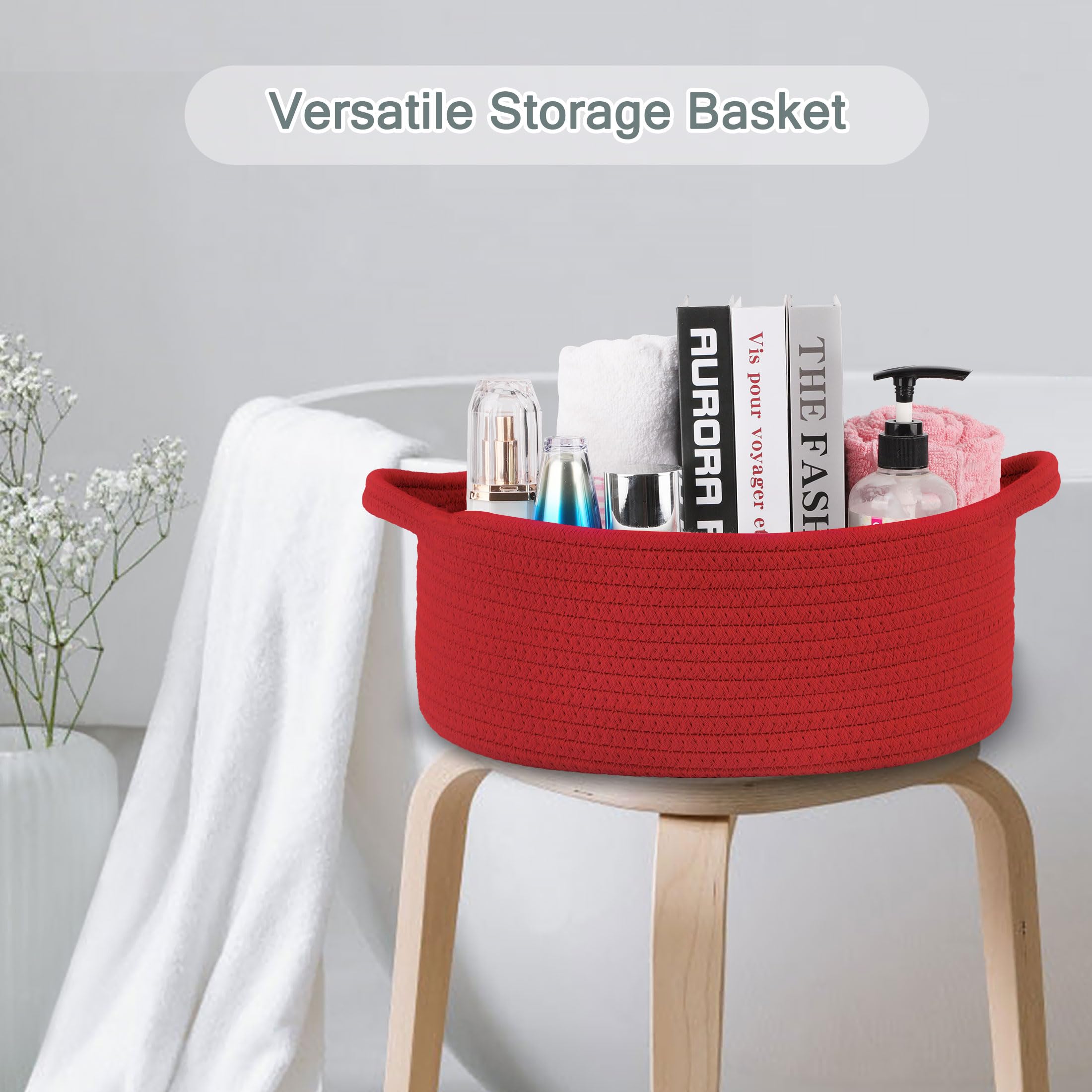 【Versatile Storage Basket】 Our rope storage basket is the perfect organizer for keys, wallets, diapers, books, remotes, toys, makeups, and more. You can use it as a baby basket, end table basket, shelf storage basket, office desk basket, basket for bathroom, kids' toy basket, book basket, shallow basket, and more. It can also be used as a pet toy basket for cats and dogs.