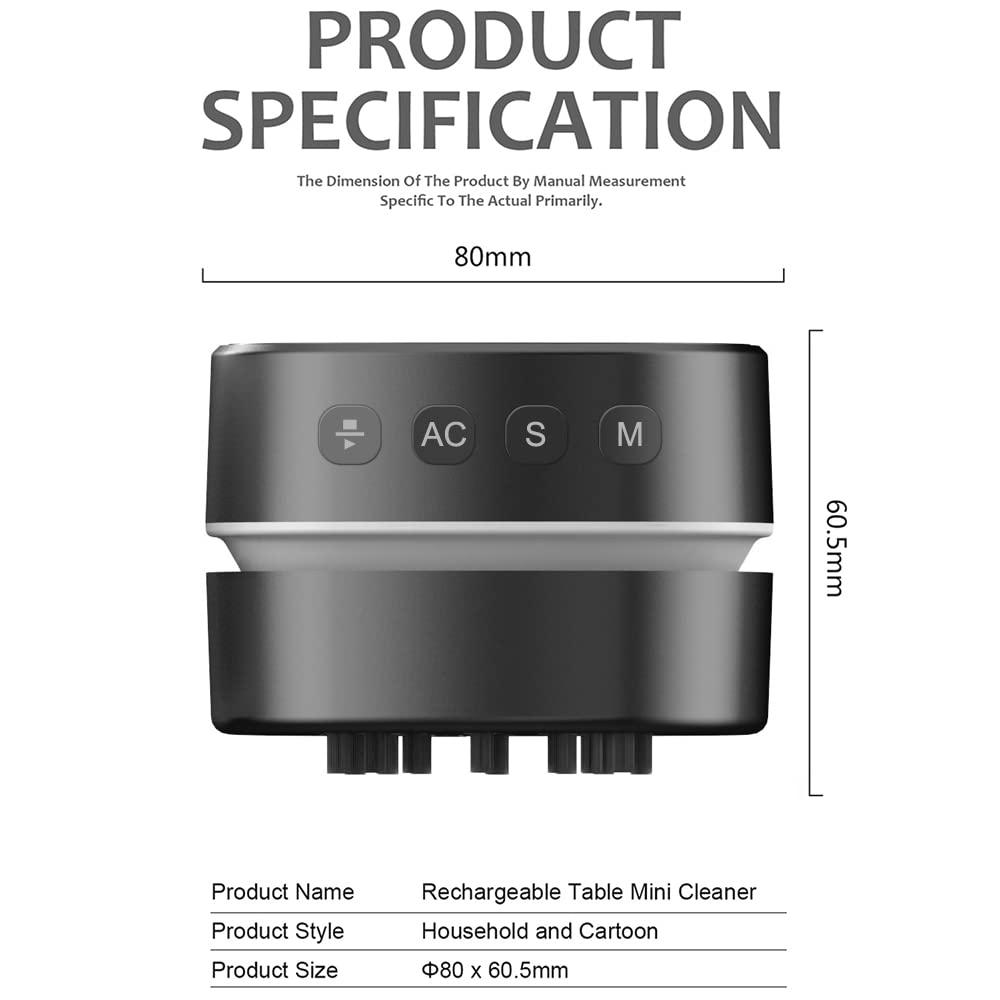 【High Suction and Low Noise】With 1000Pa of suction power, Table Vacuum Cleaner is strong enough to pick up even the largest piles. Yet, it is quiet enough for you to read or sleep while it cleans. Our cordless dust catcher save you from the mess of paper scrap, daily dust, cigarette ash, dog hair or powder on the desk. The table cleaner spins at up to 9000 rpm compared to 6000 rpm of other cleaner. It generates the suction power of a vacuum.