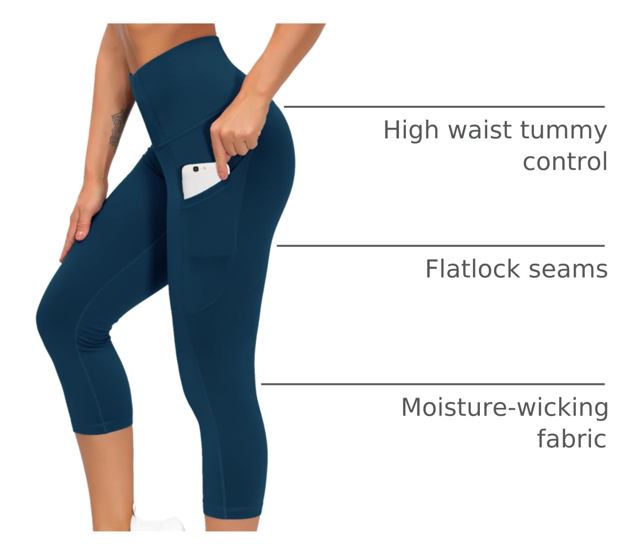 Comfortable High Waist: Wide Waist Elastic Waistband to Cover Navel Which provides Tummy Control and Would not Fall. Suitable for Capri, Workout, Fitness.