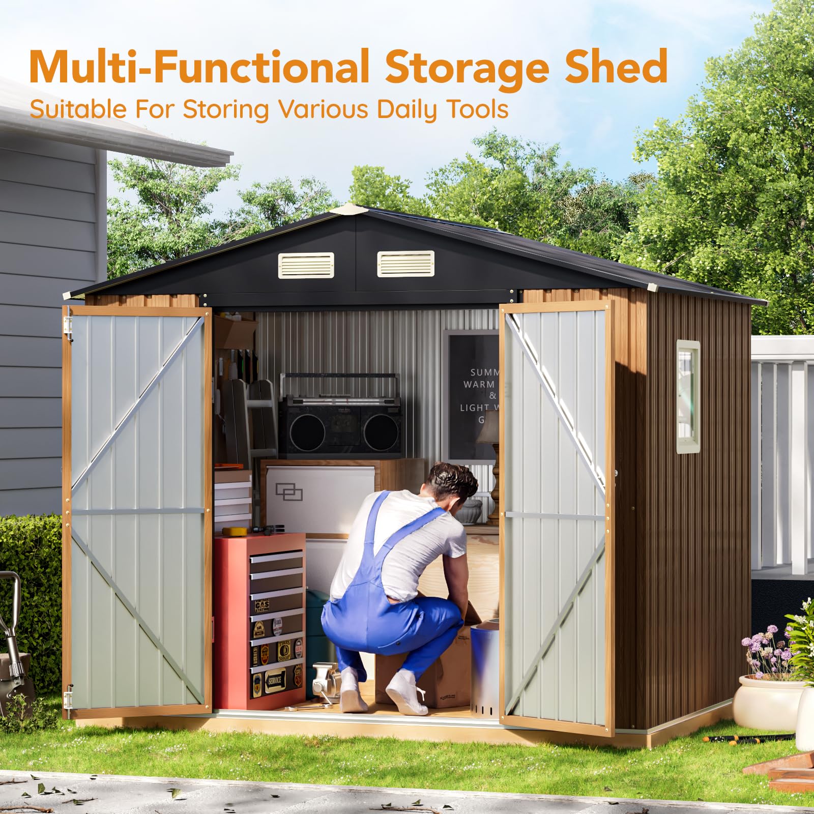 [Multiple Uses] Panovue outdoor metal shed is not only a 8x6 FT metal garden storage shed, but an open and uncluttered garden. 200 cubic feet of storage to store garden tools like shovels, lawn mowers, ladders, or outdoor items like bikes, tents to keep your garden or yard organized.Our shed has scientific height design-Max height is 76.5 inch,which for most people can stand inside.