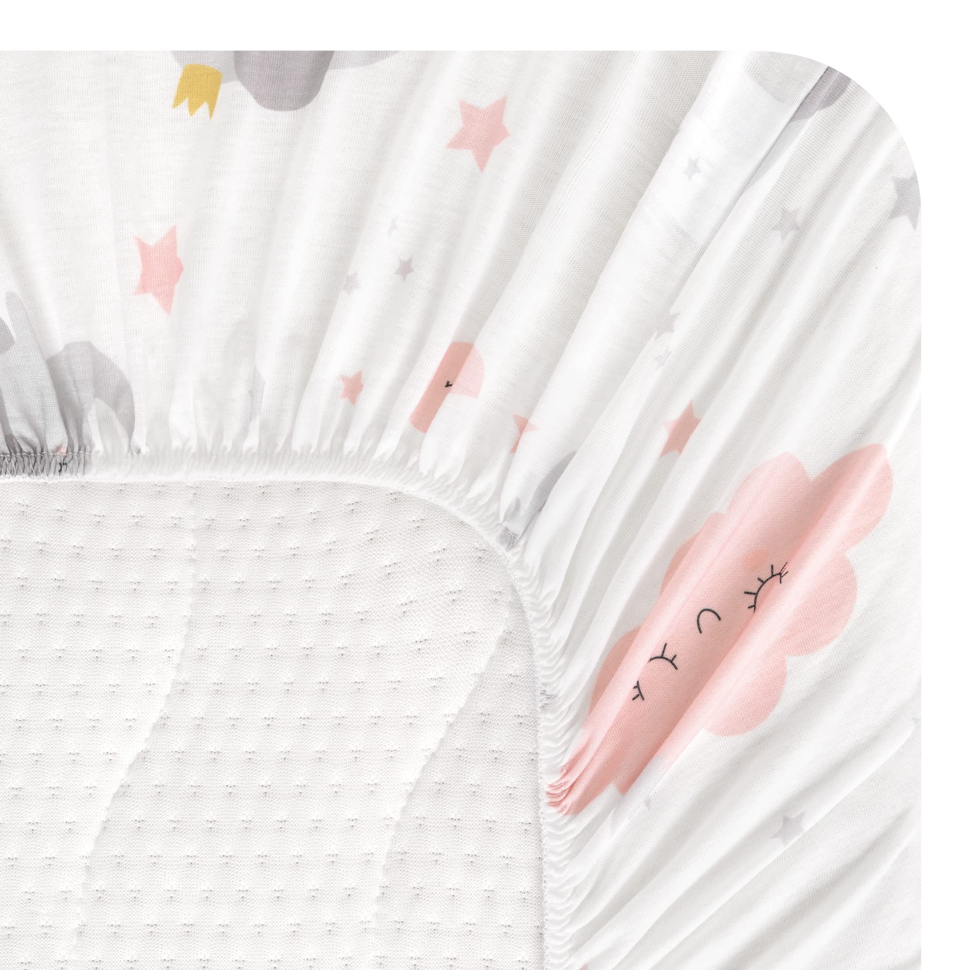 Classic Universal Size: This Bassinet Mattress Sheets have achieve a balance between elasticity and tightness. Stretches and fits oval, round, rectangular, hourglass shaped mattress up to 2.5”. No risk of mattress binding or damage.