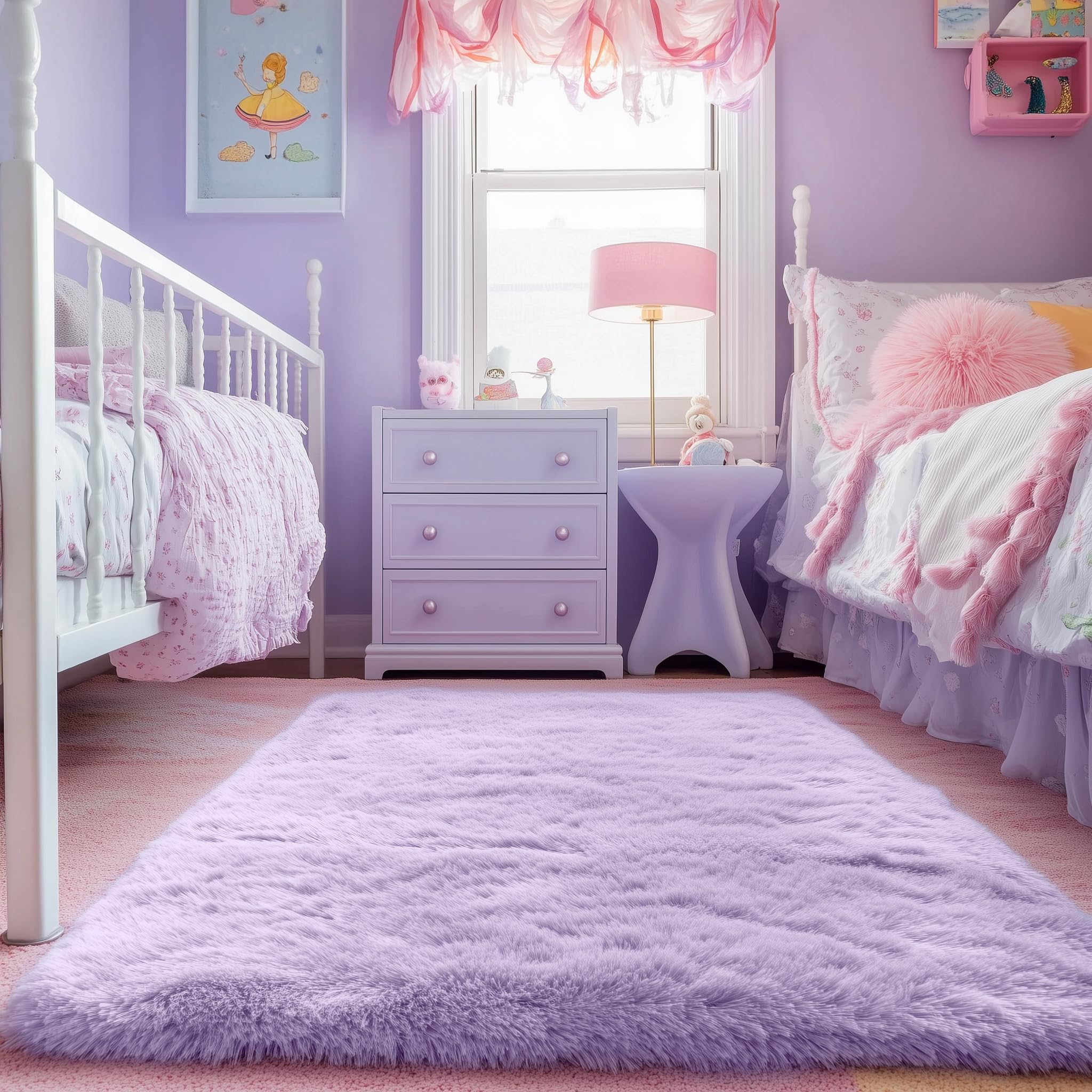 γ Safe Materials & Good Giftγ This super soft, velvety carpet is made from eco-friendly polyester, does not contain any harmful substances, no smell, no shed, which is protecting floors from stains and perfect for homes with children and pets.The plush texture offers comfort for barefoot walking and tummy time, the rich color choices and furry appearance add fun to any room-Also a good gift for grandson, granddaughter, little girl boy, baby girl boy, teenage teen girls, they will love it.