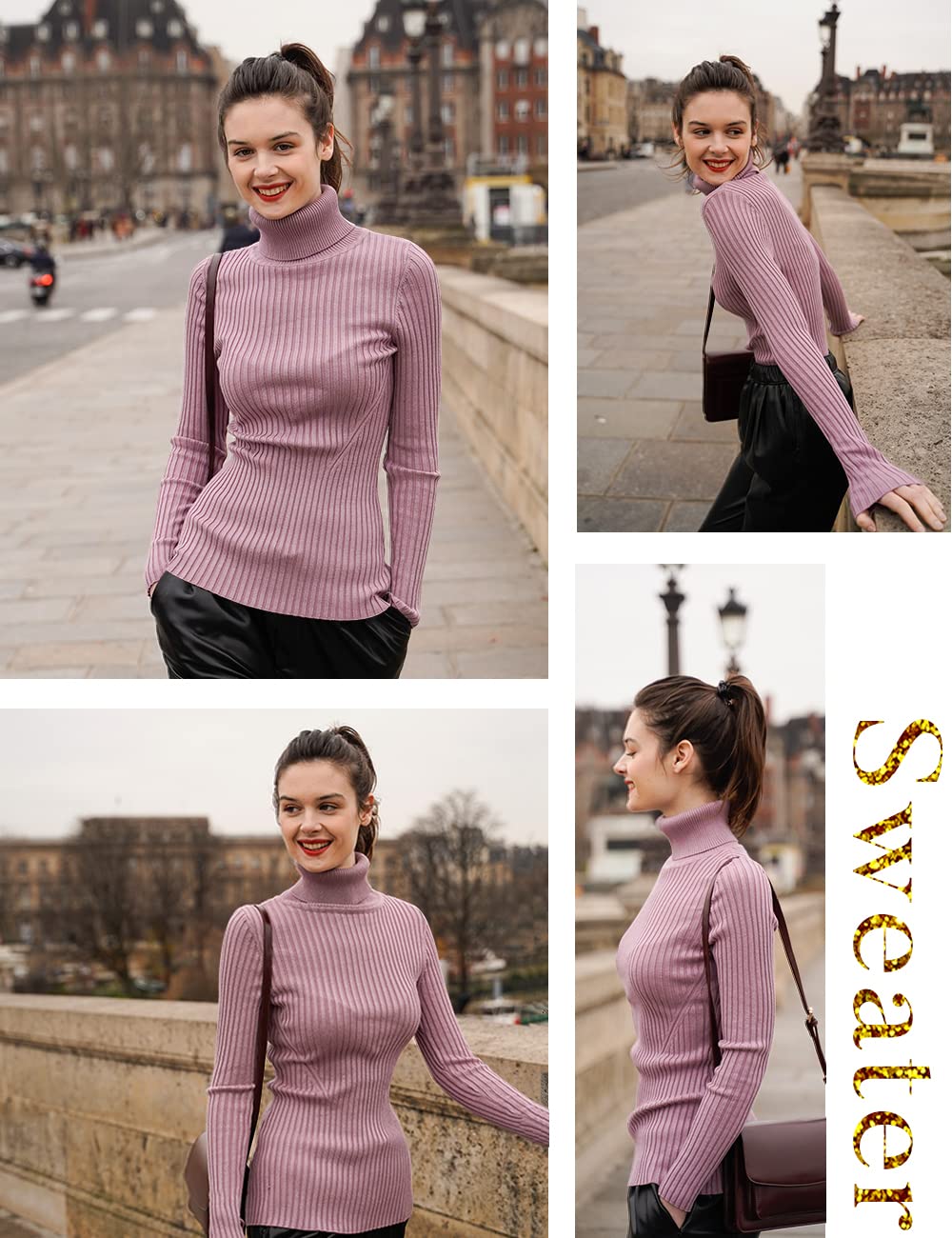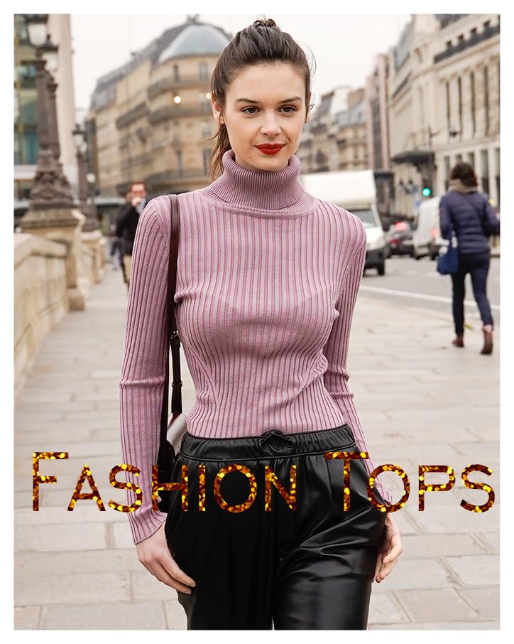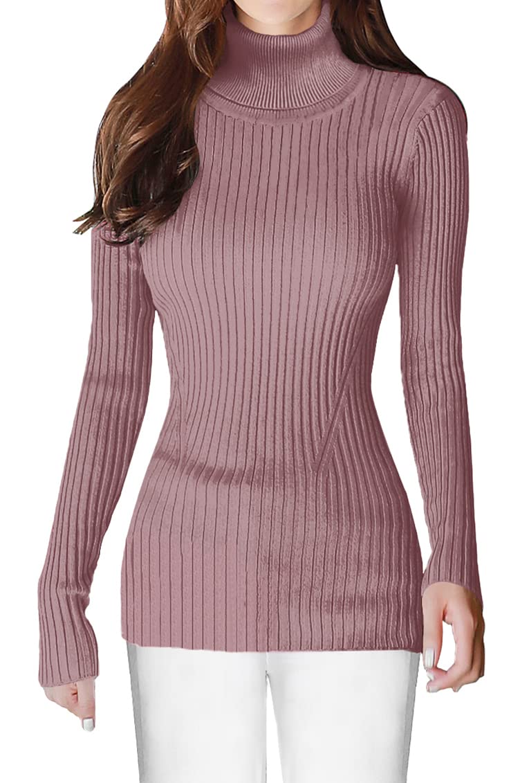 Turtle Neck Ribbed Sweater -- Knitted by Germany STROLL Machine to Ensure its High Quality Material: Highly Stretchable Viscose (Comfy Silky Smooth Feeling and Showing Off your Sexy Female Curve Silhouette)